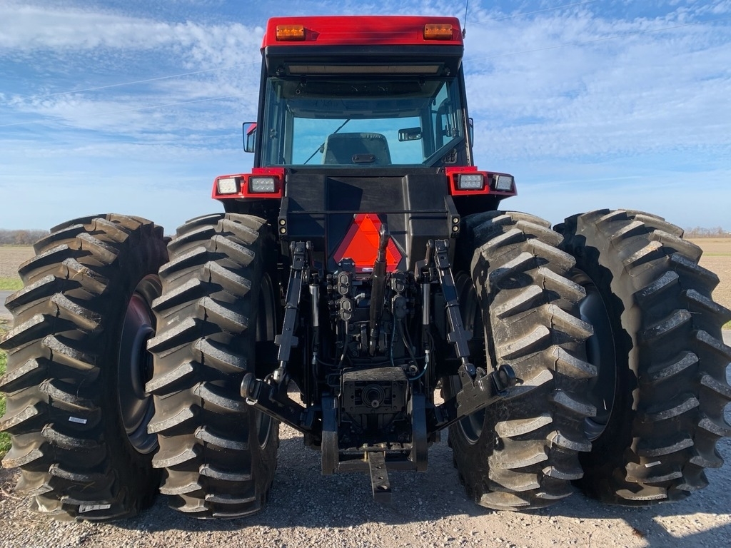 “1995 Case IH 7250 Tractor with 2,905 hours. This well-maintained tractor is powered by a 238 HP diesel engine and features MFWD for excellent traction. It’s equipped with 6 new Firestone tires, including 480R42 duals on the rear and 420R28 singles on the front. The tractor also has four rear remotes, making it versatile for various attachments and implements. Additional features include a rear three-point hitch, front weights, and a rear PTO for added functionality. Inside, the tractor is equipped with air conditioning, heat, and a radio for comfort during long workdays. It’s ready to go and is perfect for a range of tasks.”