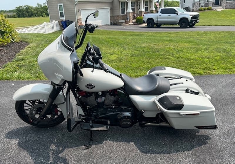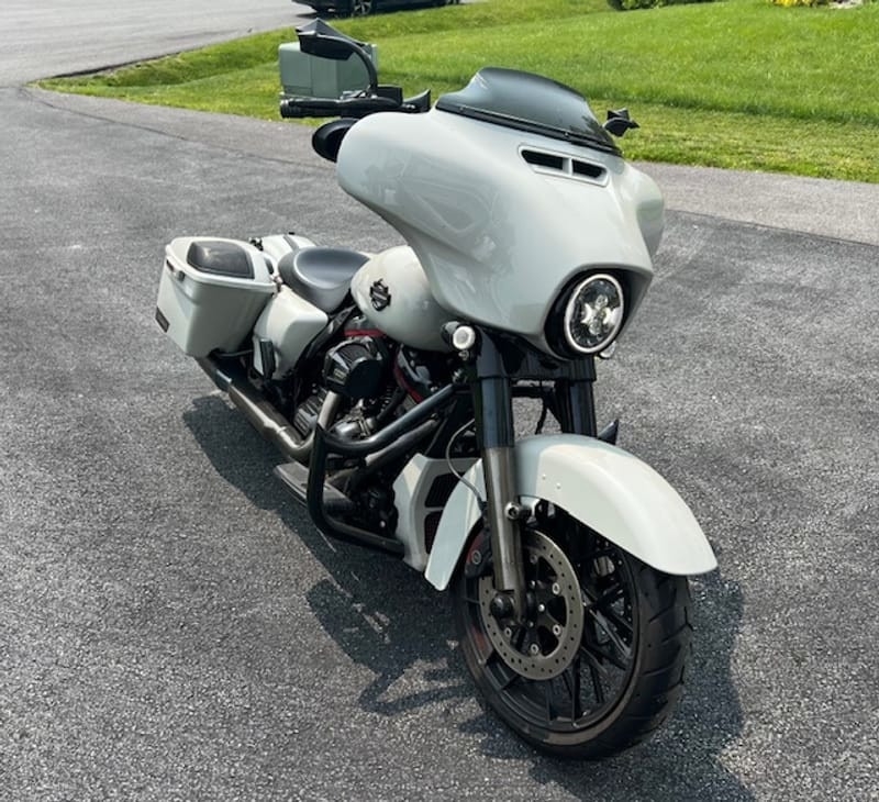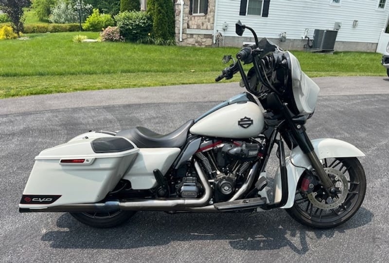 “For sale is a 2020 Harley-Davidson CVO Street Glide in excellent condition with only 7,800 miles. This premium touring bike from Harley’s Custom Vehicle Operations (CVO) lineup comes in the rare and stunning Sand Dune color with red and black trim, making it a real head-turner. Loaded with top-of-the-line features, this CVO includes Apple CarPlay, heated grips, loud in-bag speakers, and a custom seat (plus the original 2-up Harley seat). It’s also outfitted with 14-inch Meathook Ape Hangers and matching engine guards for both style and comfort. This bike is meticulously maintained and ready for your next ride—a perfect mix of luxury, power, and performance.”