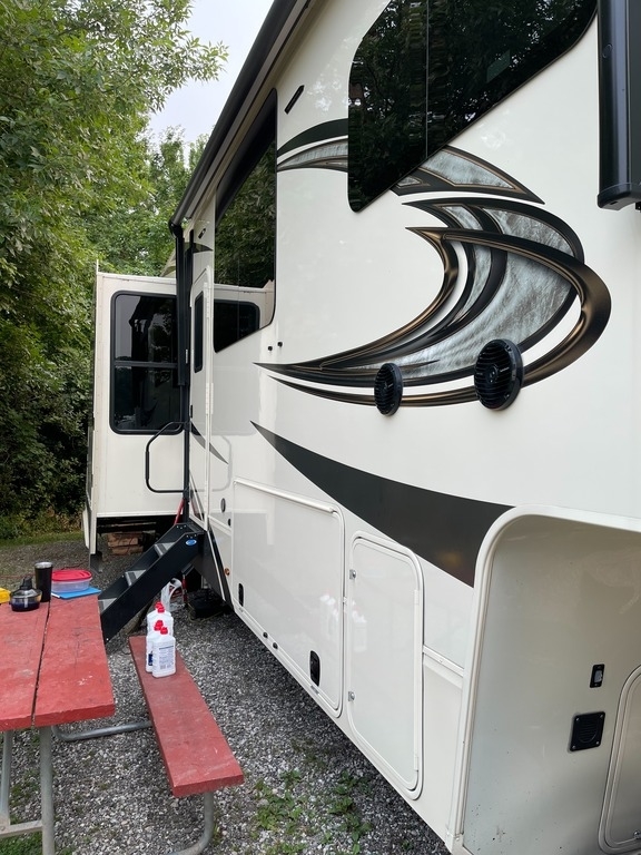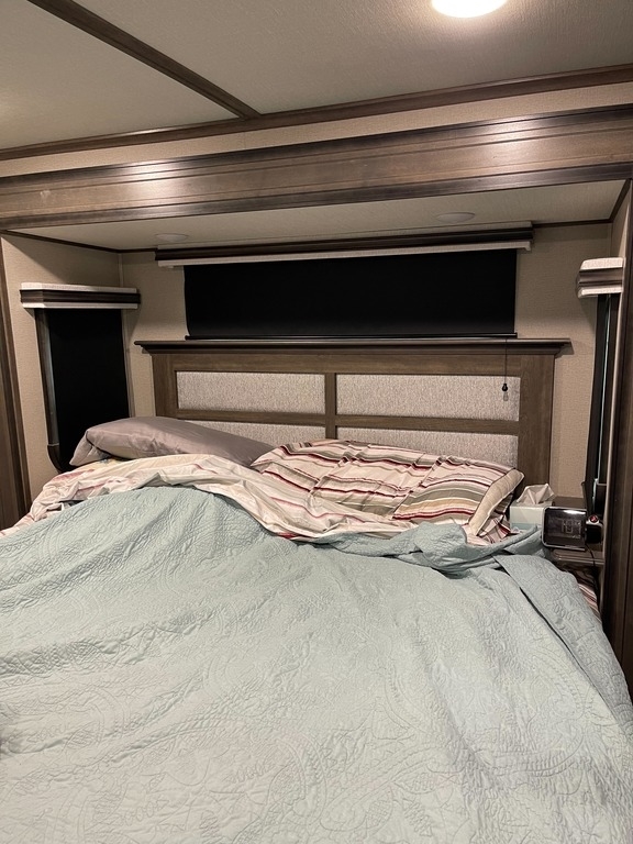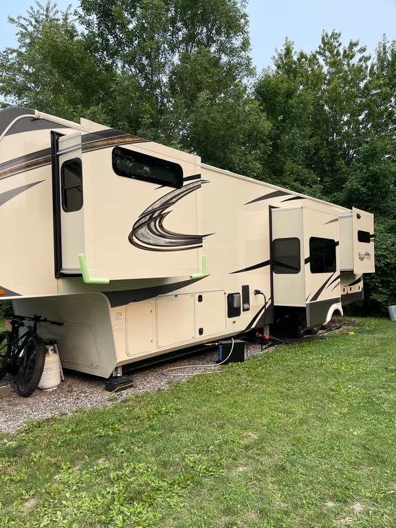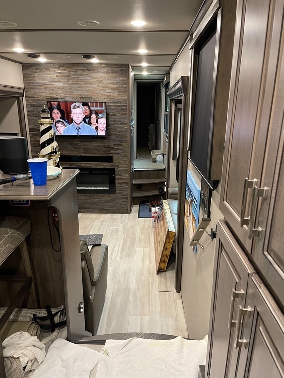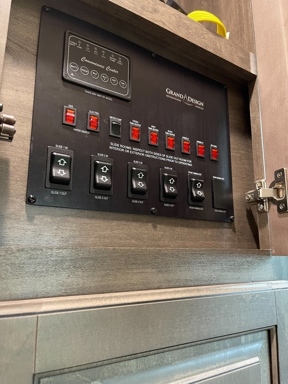 The Grand Design Solitude is nearly 41 feet long and comes equipped with 5 slide outs, 1 awning, and 2 A/C units. 6 people are able to sleep comfortably in the unit. This is a non-pet/non-smoking RV and there have not been any accidents or water damage.