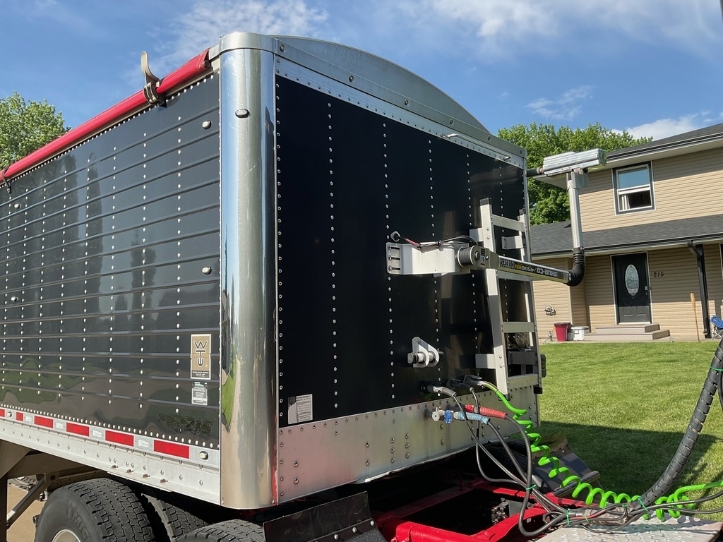 “Ready to hit the road! This trailer has been recently equipped with new bearings, tarp, tarp caps, tarp rod, tarp arms, trap straps, tires, and air tanks. The brakes are all at 60% or better, ensuring strong stopping power. It also features a self-leveling valve for easy unloading and is DOT-approved, currently in operation. The axles were just realigned, so it runs straight and true. While there are a couple of minor dings, one bent bow, and another bow that broke away from its weld, this trailer remains fully functional and reliable.”