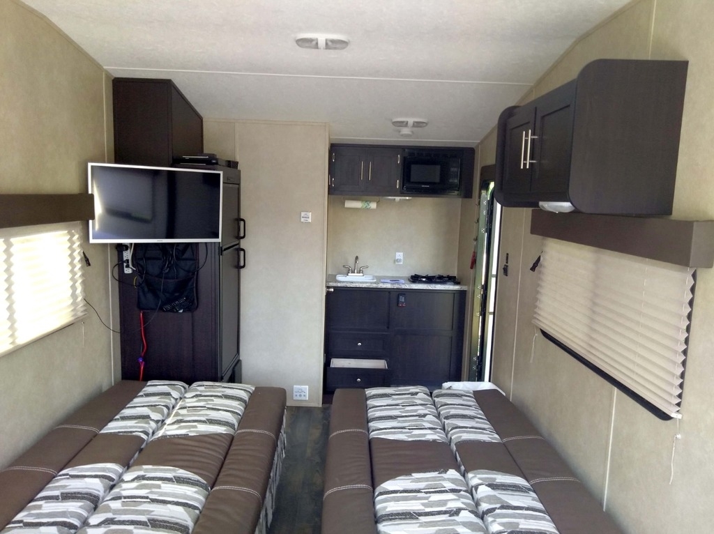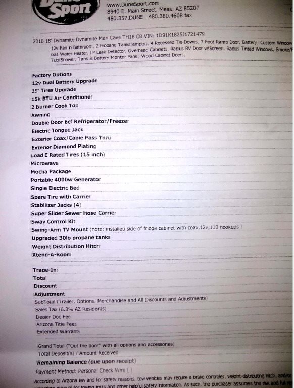 This 2018 Dynamite Man Cave is 18 feet and comes equipped with a Queen Size Bed, has 1 Awning and sleeps 4. This is a non-pet/non-smoking RV and there has not been any accidents or water damage.