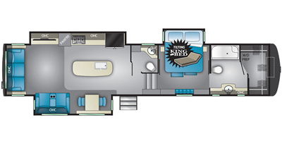 This Heartland has a overall length of 42.5ft and comes equipped with 1.5 Bathrooms, 3 Slide Outs, 2 Power Awnings, 3 AC Units, 3 TV's, Master Suite, and Plenty of Room to Sleep 6.