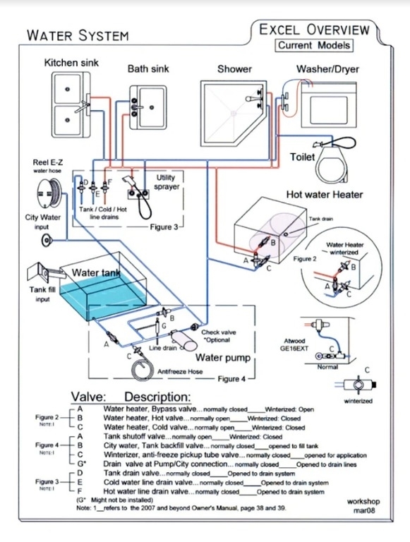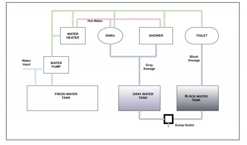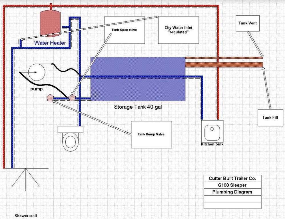 o Water supply lines, plumbing fixtures and 12V Flotec pump