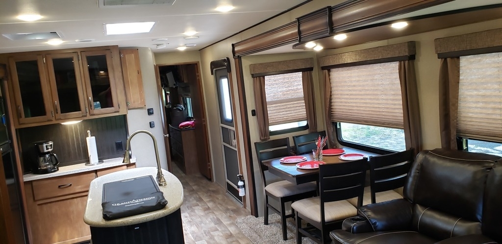 This 2016 Grand Design Reflection 313RLTS Travel Trailer overall length is 37 feet, has 3 slide outs and sleeps 6. This is a non-pet/non-smoking RV and there has not been any water damage.