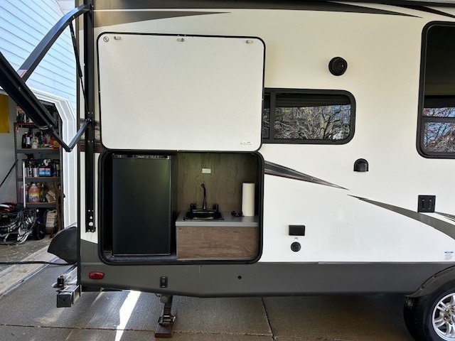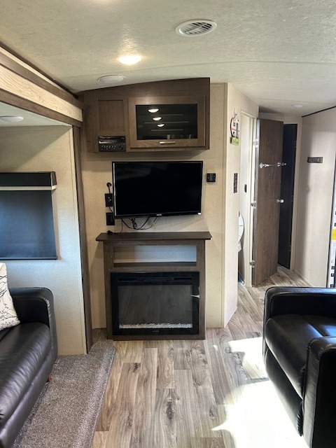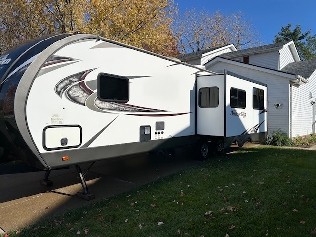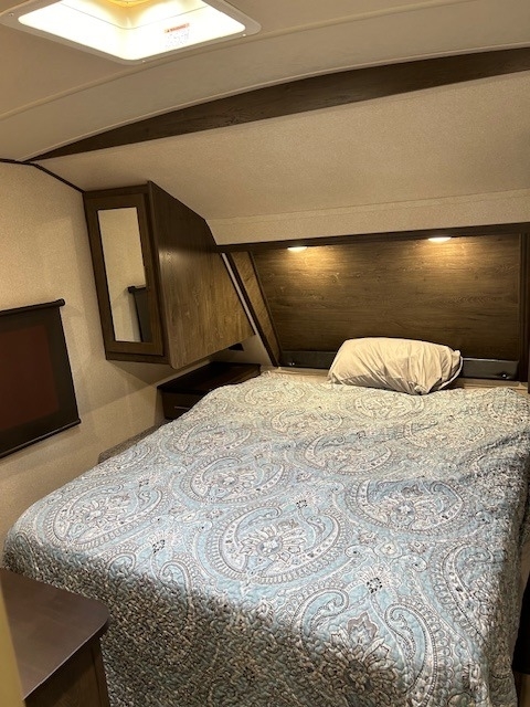 equipped with 1 power retractable slide-out, 1 power retractable awning, 1 A/C
