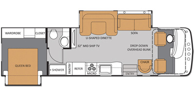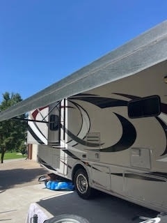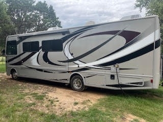 This Thor is powered by a 6.8L V10 engine and a 5-speed automatic transmission with 45,000 miles. The overall length is 33 feet and it comes equipped with 2 power retractable slide-outs, an 18-foot power retractable awning, 2 A/C units, a generator, and room to sleep up to 6. This unit has been well-maintained.