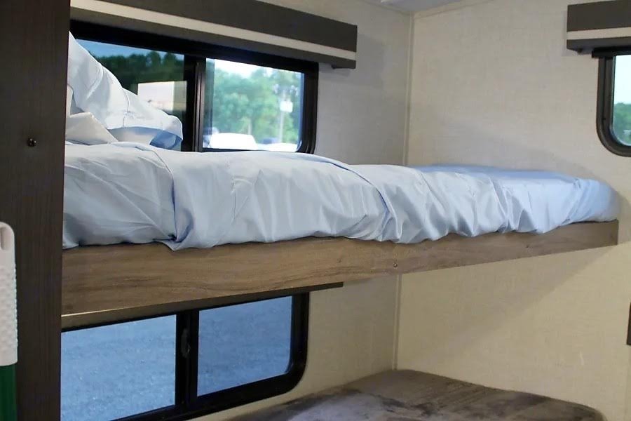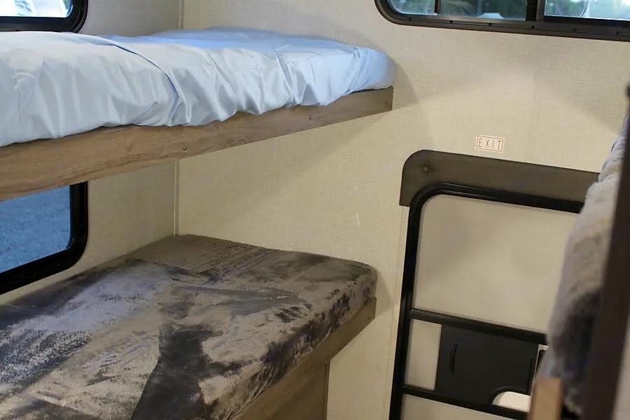 kitchen, roomy slide-outs, and a private master bedroom. The bunkhouse provides