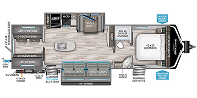 most popular bunkhouse floorplans thanks to its dedicated rear bunk room, large