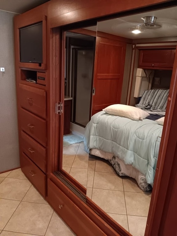Entertainment is top-notch with three TVs—one in the bedroom, one in the main