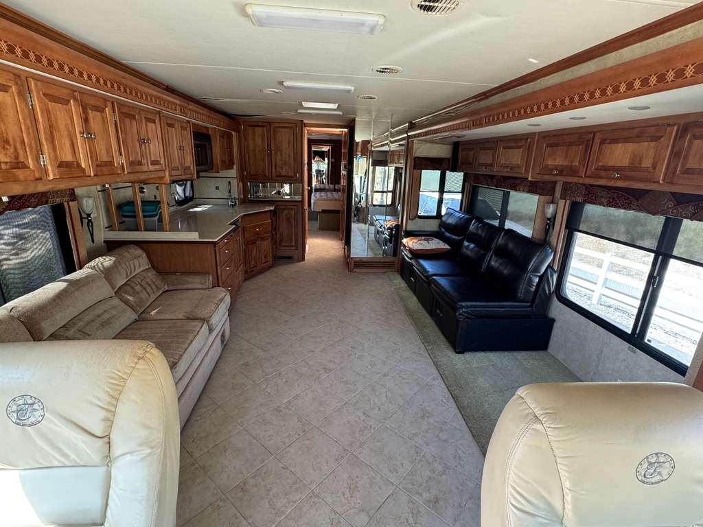 “2007 Tiffin Phaeton 40QDH Class A Diesel Pusher—an exceptional coach that combines luxury, performance, and reliability. With only 88,000 miles, this pre-DEF motorhome offers the benefits of a powerful 350hp Caterpillar engine, paired with an Allison automatic transmission on a Freightliner chassis, without the added complexity of DEF systems. This coach features four slide-outs, full-body paint, a rich cherry wood interior, residential-style appliances, and a washer/dryer combo, making it perfect for extended travel or full-time living. Comfort is enhanced by dual A/C units, leveling jacks, a quiet Onan diesel generator, an electric awning, and a backup camera for added safety. In full transparency, this motorhome carries a rebuilt title, but it has been professionally restored, certified, and is fully road-ready—offering peace of mind and great value. It’s also been upgraded with LiFePO4 batteries and four 100W solar panels with a controller, ensuring your batteries stay charged and you're ready for off-grid adventures. This Phaeton has been well cared for and runs great—a perfect choice for anyone seeking a powerful, well-equipped diesel pusher without DEF hassles. Ready to hit the road? This coach is ready when you are!”