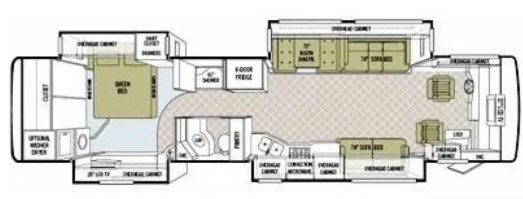 This Tiffin is powered by a 350HP Caterpillar C7 diesel engine and a 6-speed automatic transmission with 88,000 miles. The overall length is 40 feet and comes equipped with 4 power-retractable slide-outs with toppers, 1 power-retractable patio awning, 2 A/C units, a generator, solar panels, a washer/dryer combo, and room to sleep up to 8. This unit has been well-maintained.
