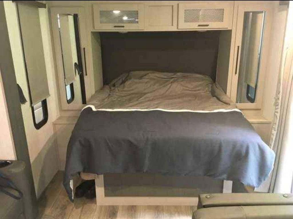 large windows on both sides and a privacy curtain for the front bedroom. The