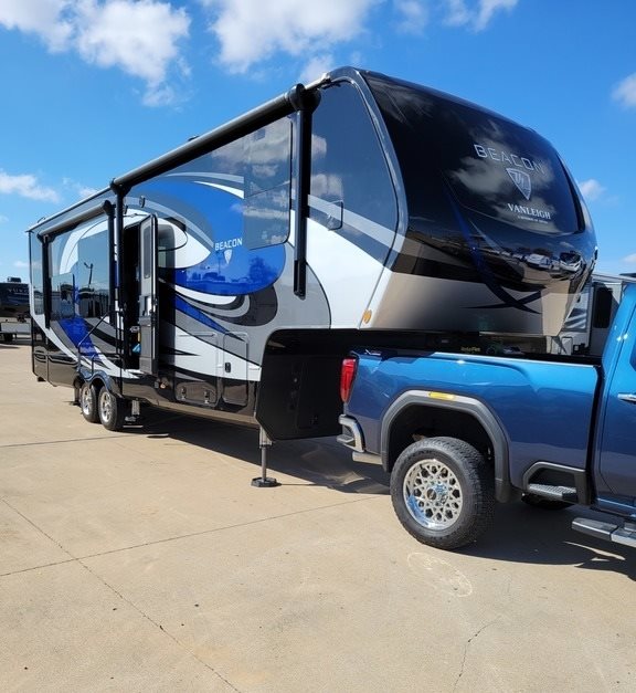This 2020 Vanleigh RV Beacon 34 RLB Fifth Wheel is 34.92 feet long