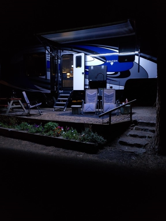 and comes equipped with three slide outs, two patio awnings, two conditioning