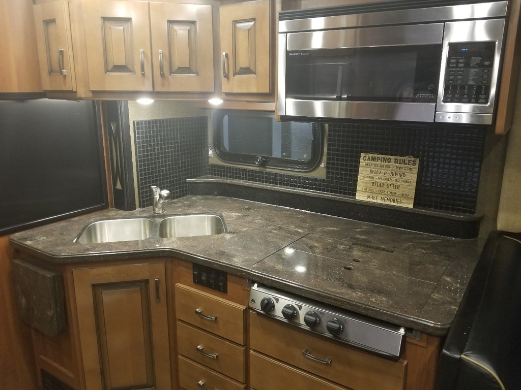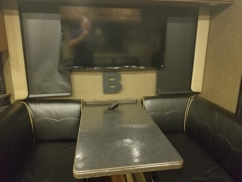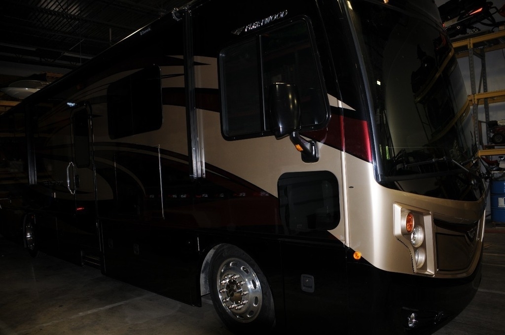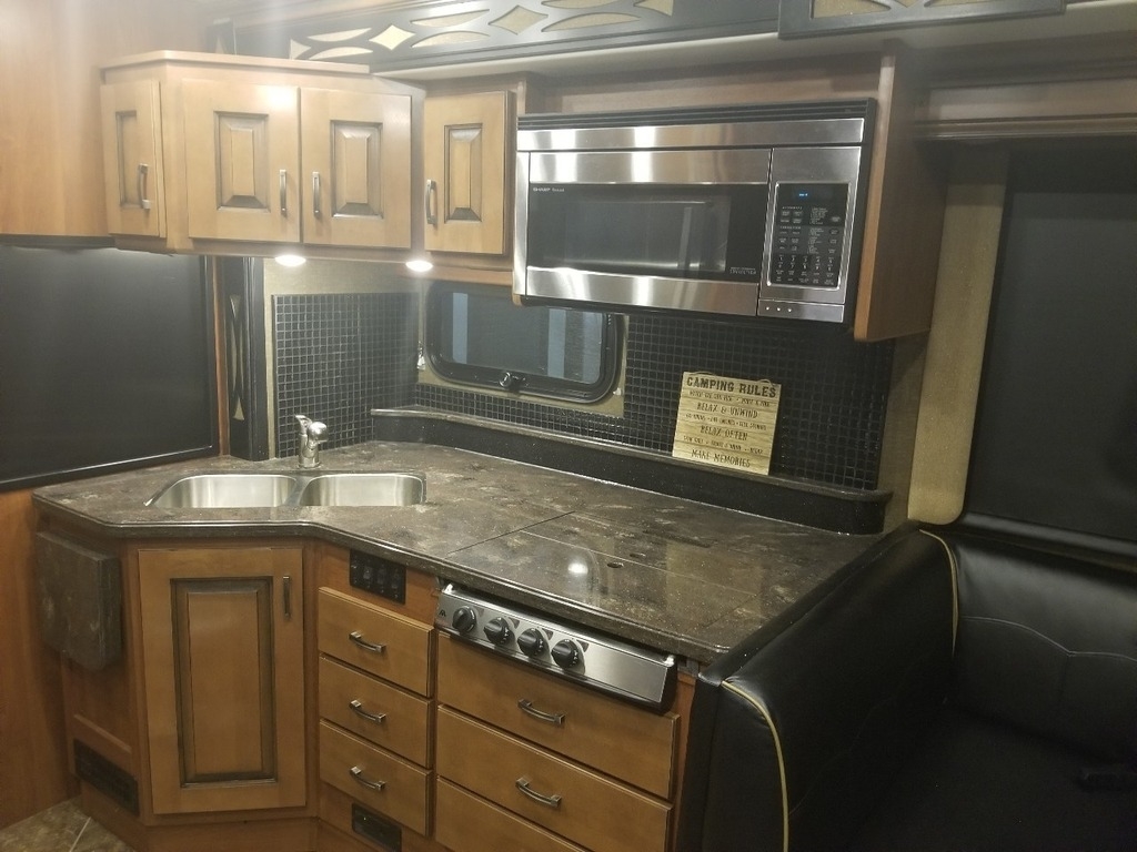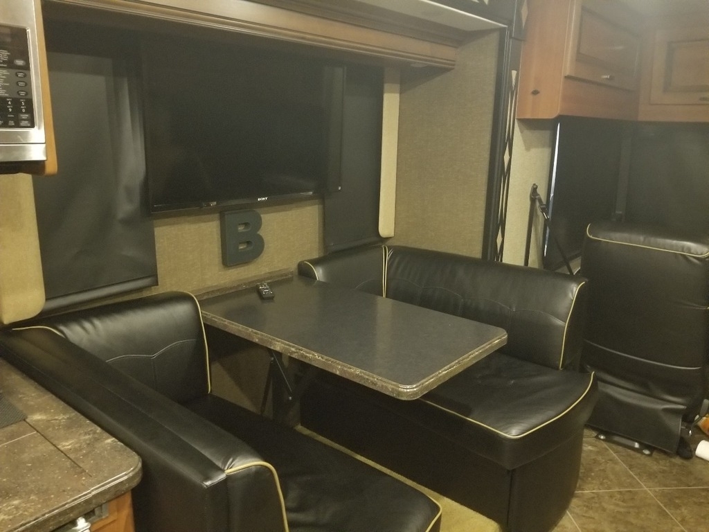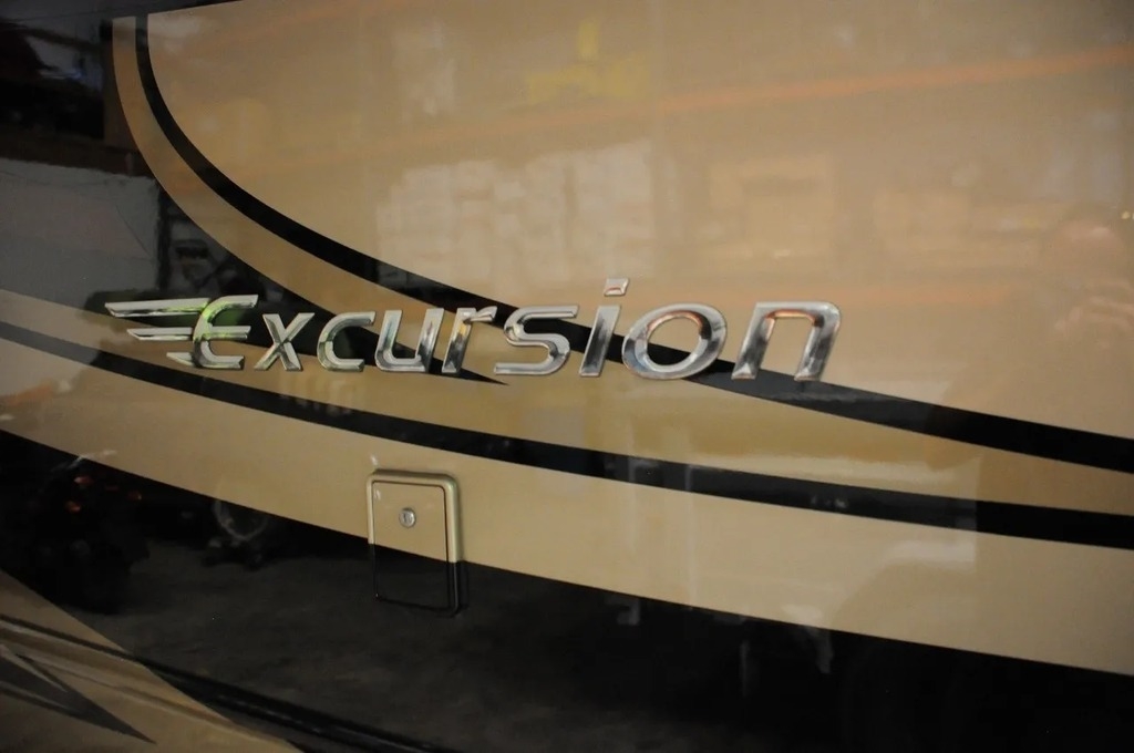 This 2015 Fleetwood Excursion is powered by a Cummins I6 Diesel Pusher