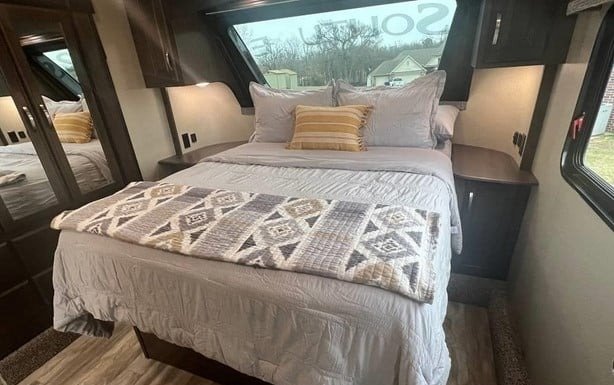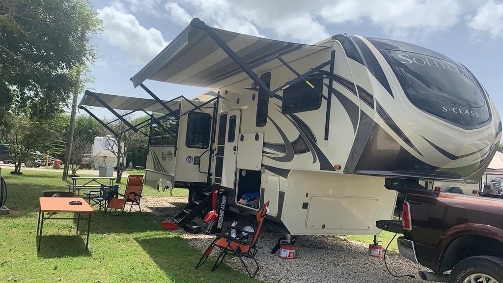 “2020 Grand Design Solitude 2930RL-R Fifth Wheel in excellent condition, with an electrical warranty for added peace of mind. This luxurious RV features an inverter and power jacks for convenience and ease of use. The wide base unit provides extra stability, and it is currently winterized, making it ready for storage or the next adventure. Inside, the 10 ft ceiling in the living area and kitchen creates a spacious and open atmosphere. With top-quality finishes and attention to detail, this Solitude is perfect for both short trips and long stays. Don’t miss the opportunity to own this well-maintained, feature-packed fifth wheel!”
