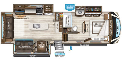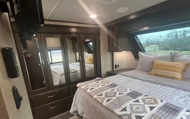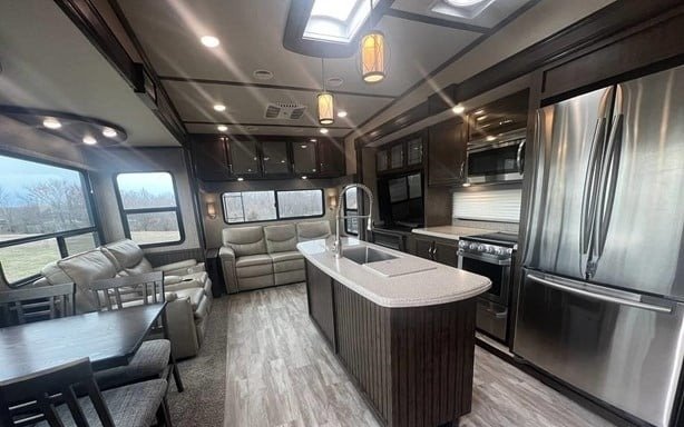 This Grand Design has an overall length of 34.33 feet and comes equipped with 3 power retractable slide-outs, 2 power retractable awnings, 2 A/C units, a fireplace, and plenty of room to sleep 4. This unit has been well-maintained.