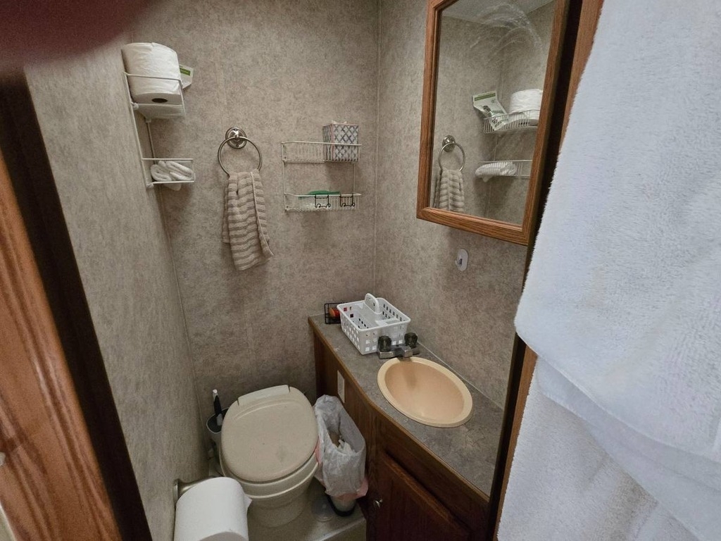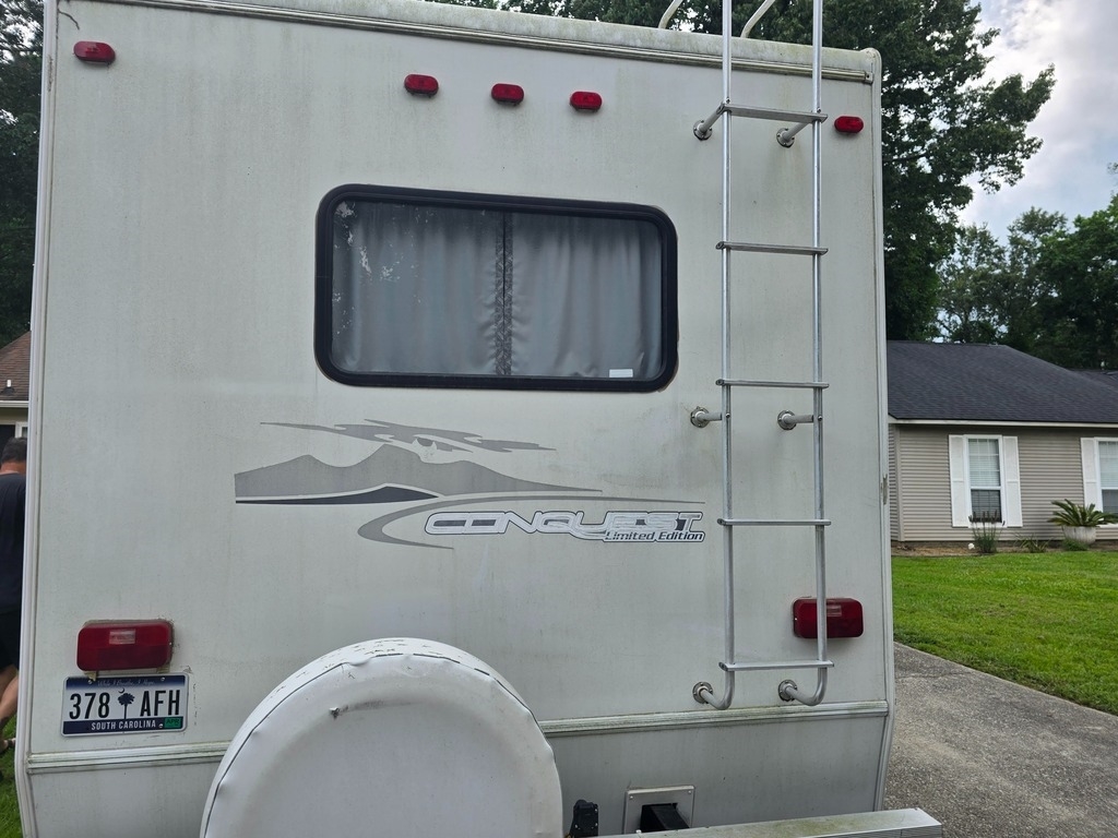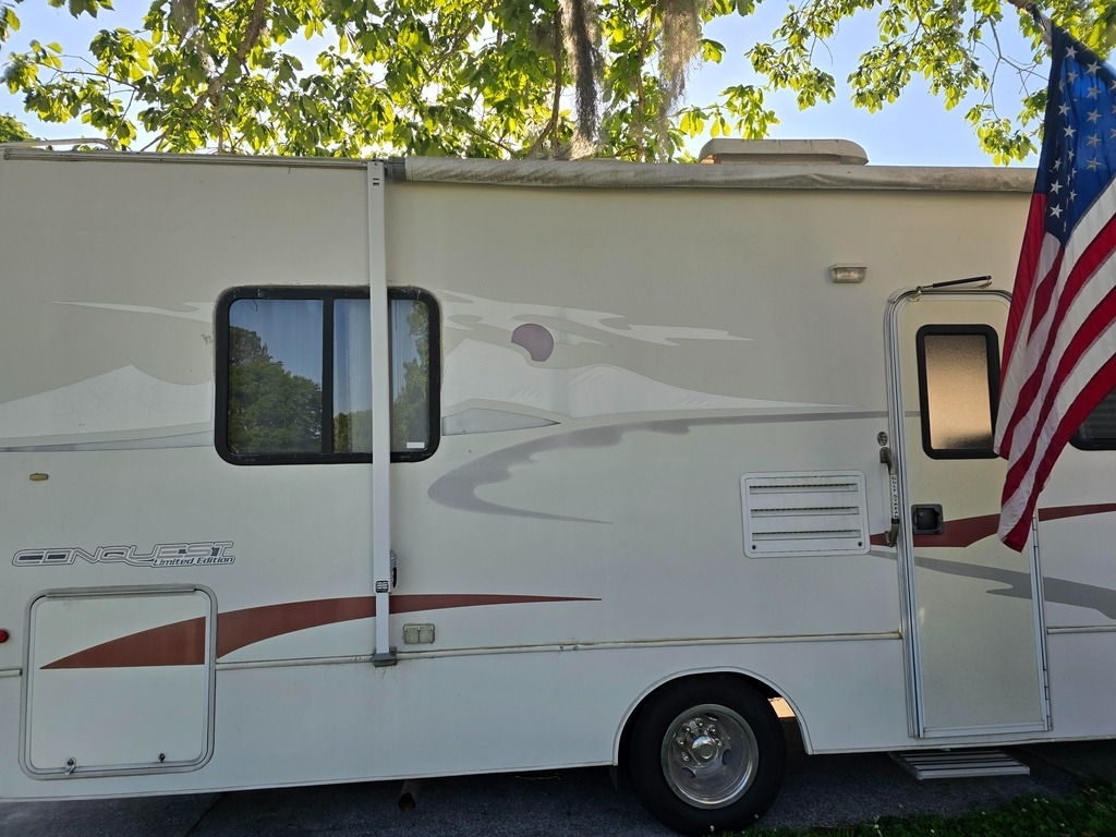 This Conquest is powered by a 6.0L V8 engine and a 5-speed automatic transmission with 43,354 miles. The overall length is 29 feet, 1 A/C unit, generator, and plenty of room to sleep 6. This unit has been well-maintained.