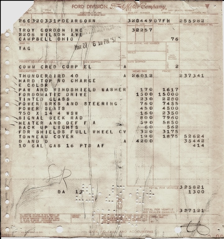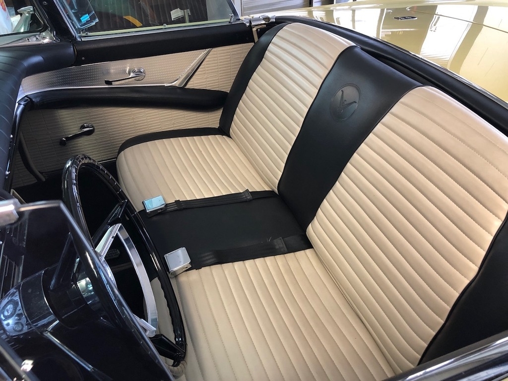 This Ford is powered by a 312 V8 T-Bird gas engine, driven with an Automatic 3 speed transmission both 104,000 original miles. This beauty is shown in Inca Gold exterior and Black and White interior, has been garage kept and is non-smoking.