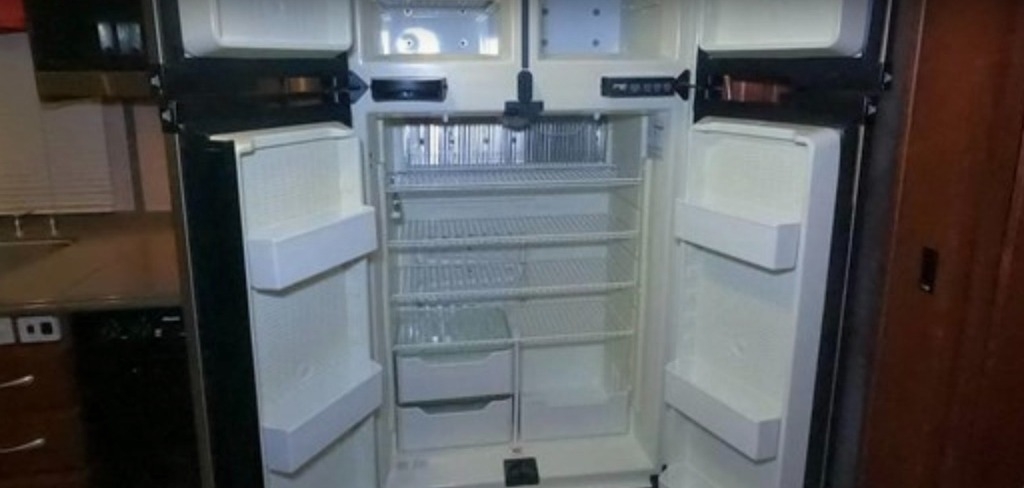 includes a large refrigerator, oven, stovetop propane, mini oven, and