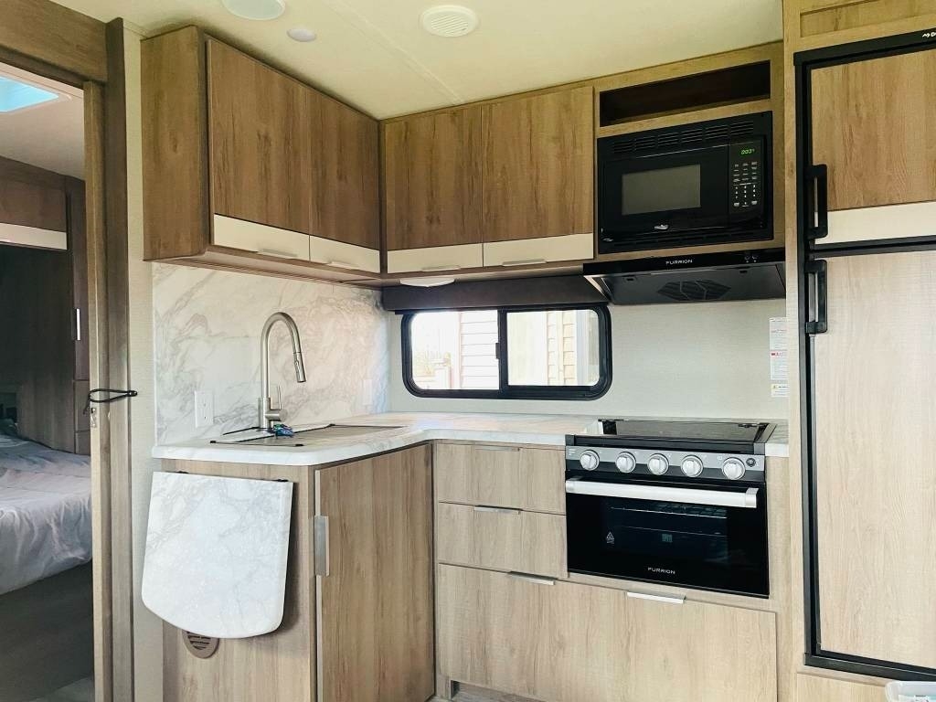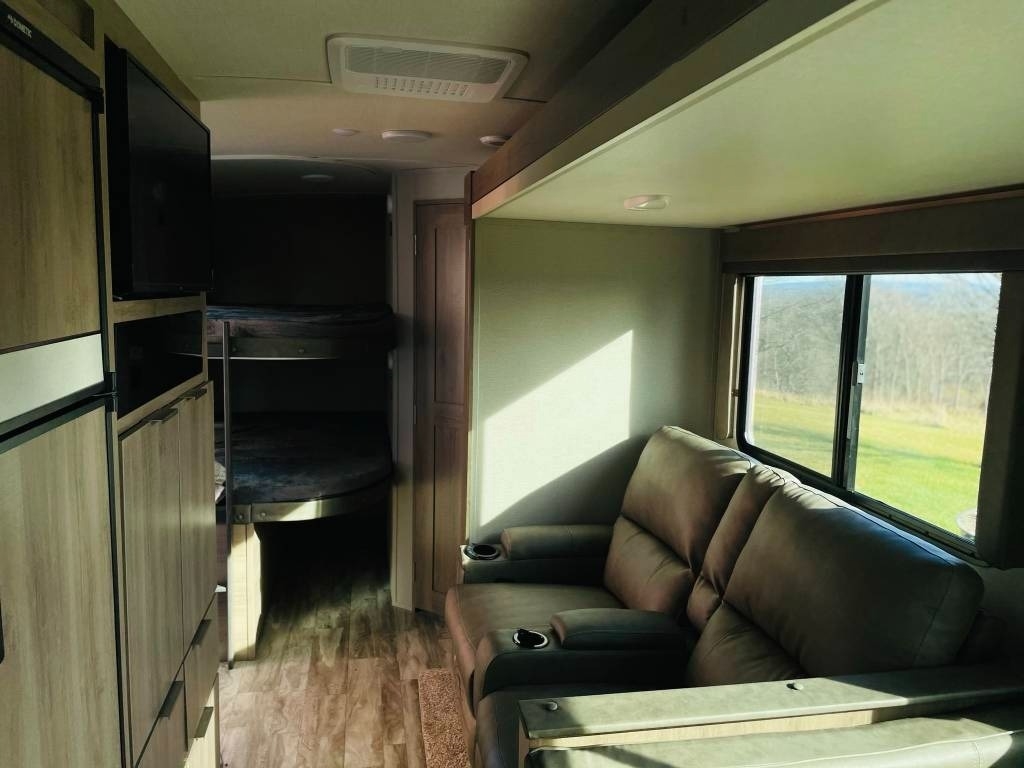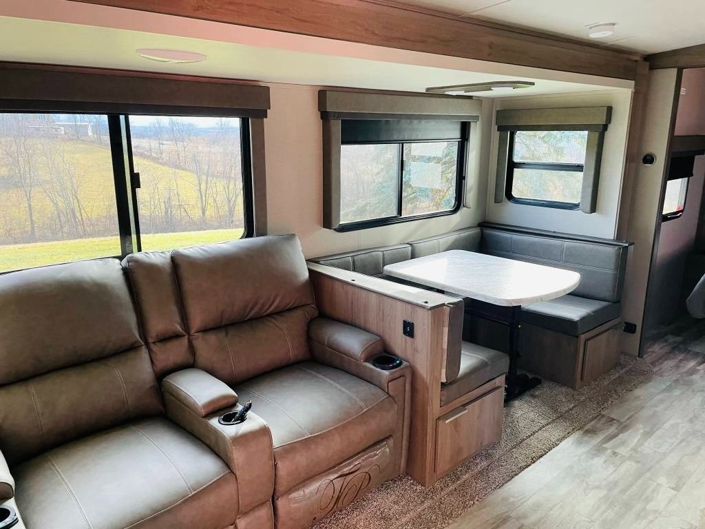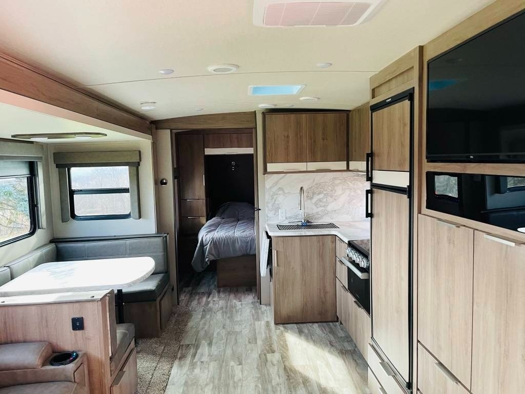 This 2021 Grand Design has an Overall Length of 32’ and Comes Equipped with 1 Slide Out, 1 Awning, 1 AC Unit and Plenty of Room to Sleep 10.