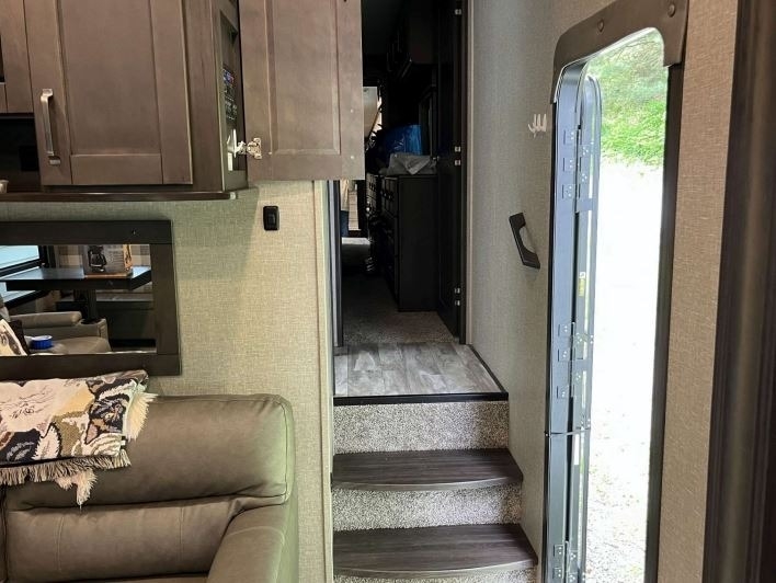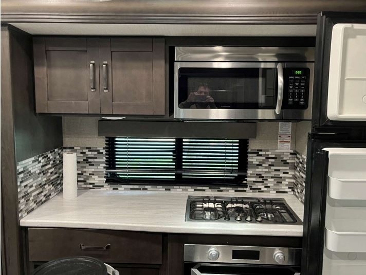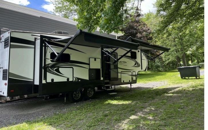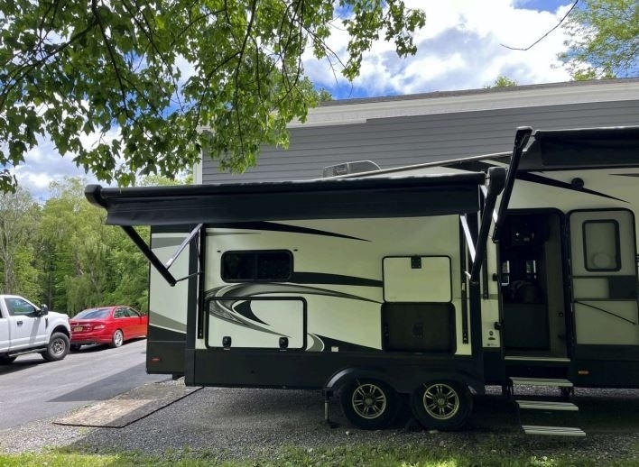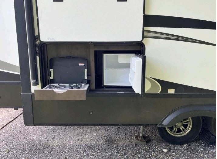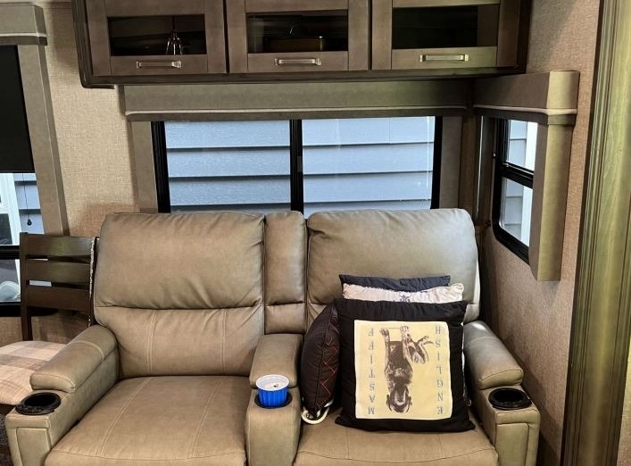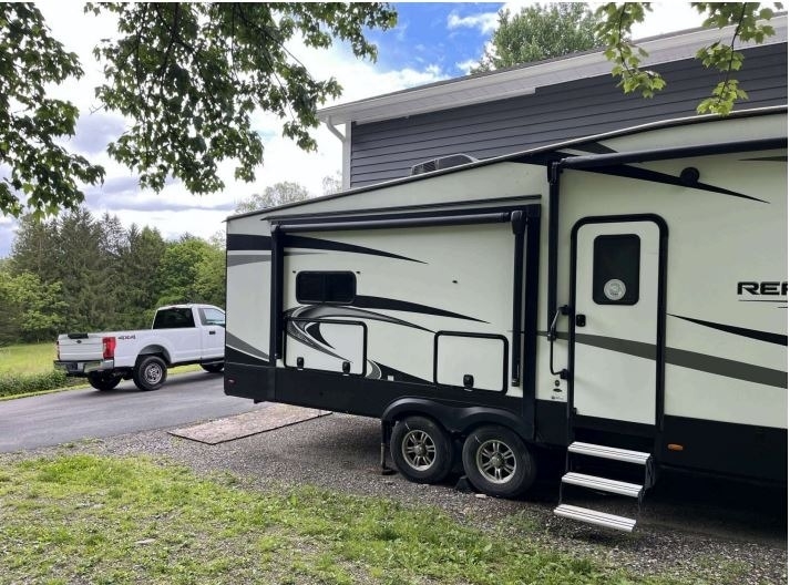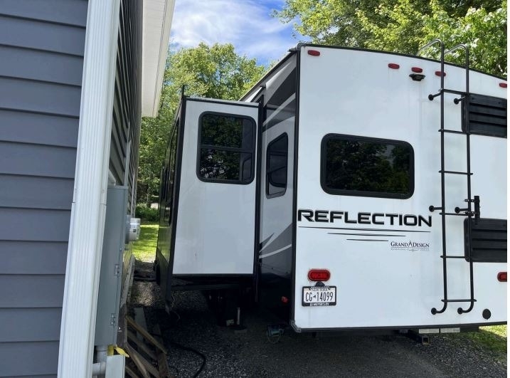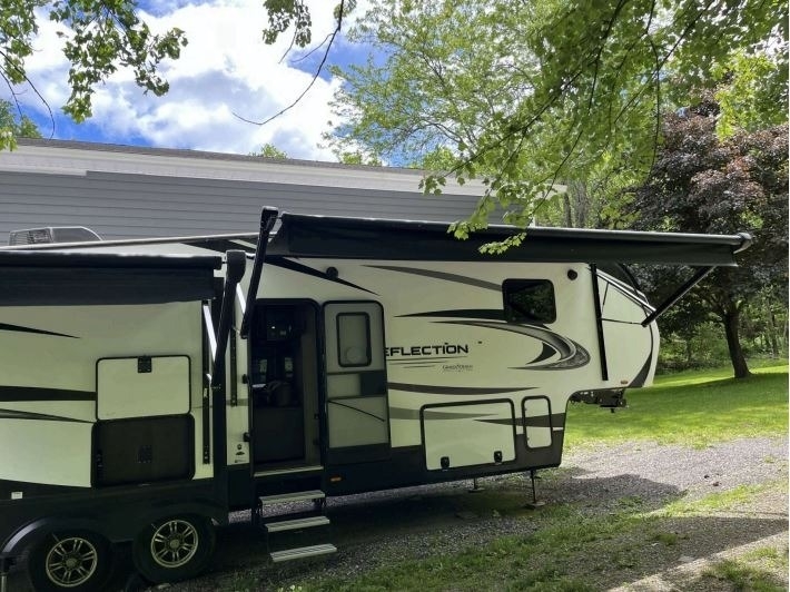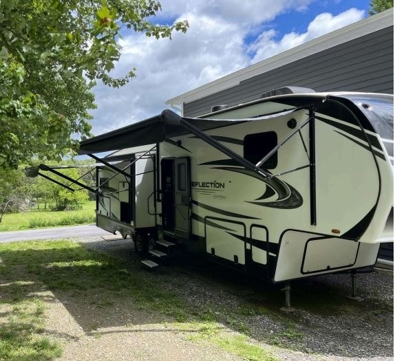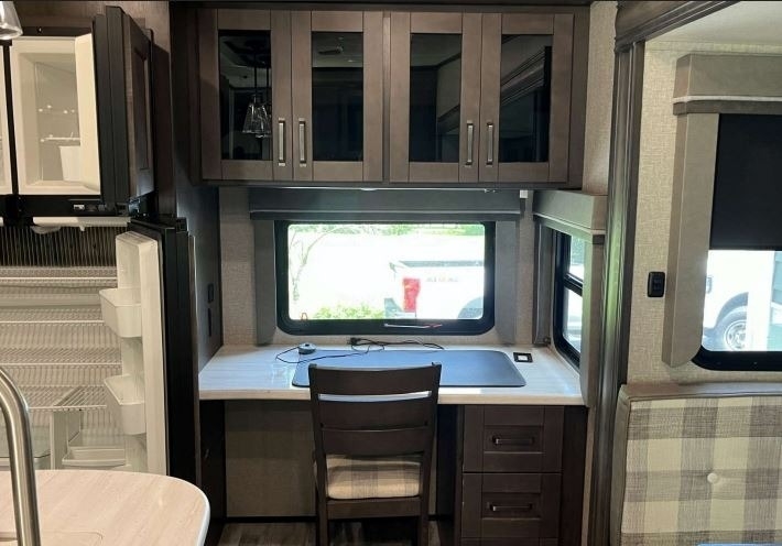 “For sale is a 2020 Grand Design Reflection 320MKS Fifth Wheel, a well-equipped and comfortable rig that's ready for travel or extended stays. It features a residential refrigerator that runs on both gas and electric, along with a convenient front desk area—perfect for remote work or hobbies on the road. The living space includes dual recliners with heat and massage features, a cozy fireplace, and 2 TVs for entertainment. Outside, find a full outdoor kitchen and entertainment setup, ideal for relaxing and hosting under the awning. The tires are about two years old and in great condition, and it also comes with a brand-new RV cover that’s still in the box. This well-maintained fifth wheel offers both comfort and functionality for the next adventure.”