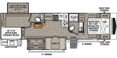 equipped with 2 power retractable slide-outs, 2 power retractable awnings, 2