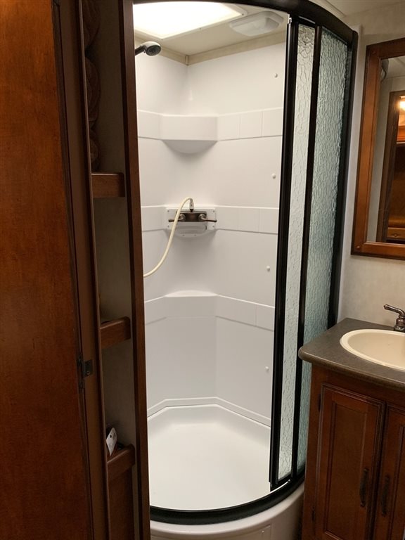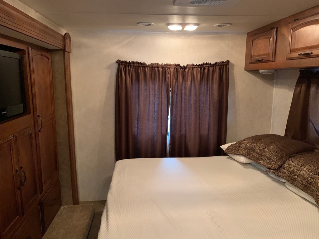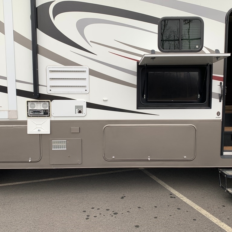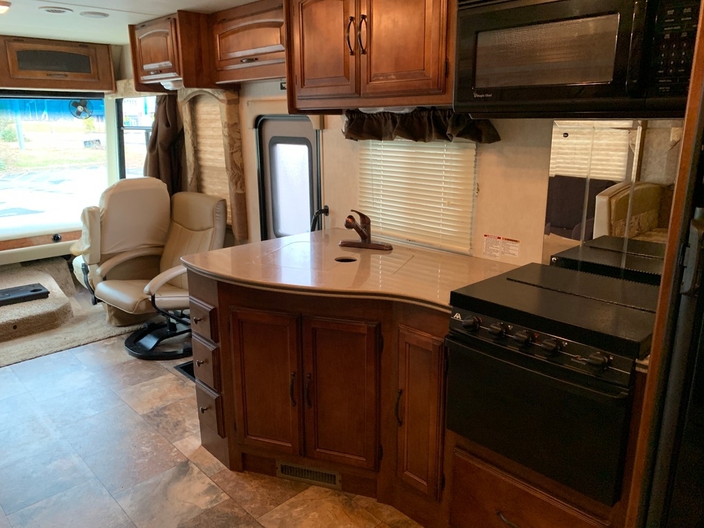 by a Ford Triton V10 Gas Engine combined with an automatic transmission. The overall length is 34 feet and comes