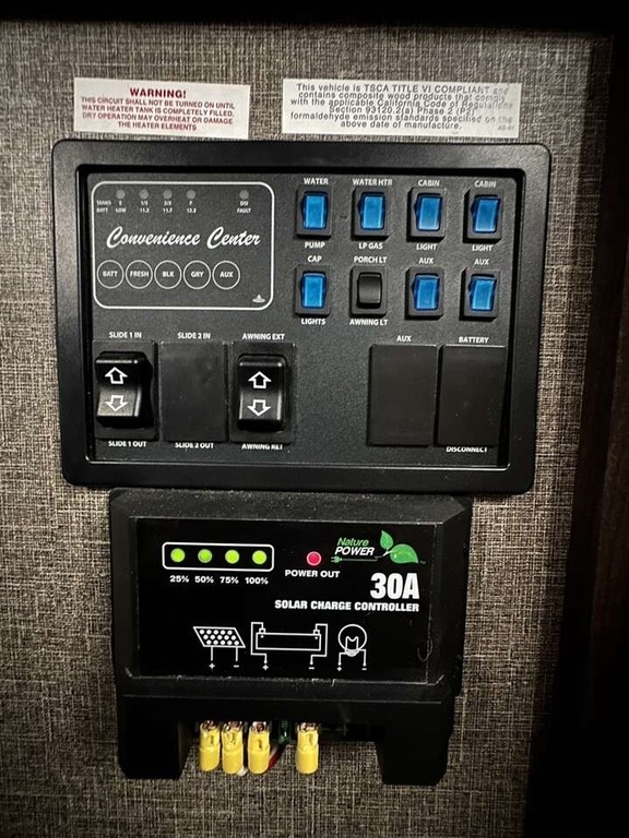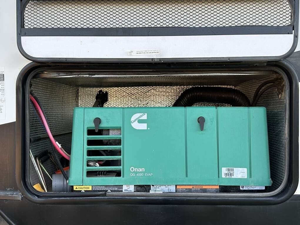 This Heartland has an overall length of 36.7 feet and comes equipped with 1 power retractable slide-out, 1 power retractable awning, 1 A/C unit, a generator, 200W solar, a 16-foot garage area, and plenty of room to sleep 8. This unit has been well-maintained.