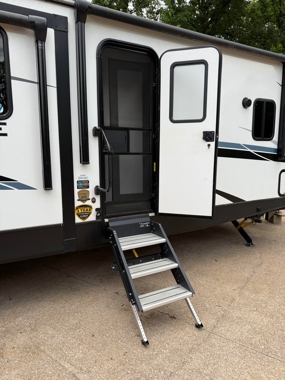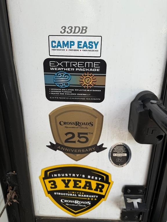 This CrossRoads has an overall length of 38.08 feet and comes equipped with 2 power retractable slide-outs, 2 power retractable awnings, 2 A/C units, a bunkhouse, 1½ baths, a fireplace, an outdoor kitchen, and plenty of room to sleep 10. This unit has been well-maintained.