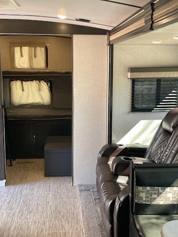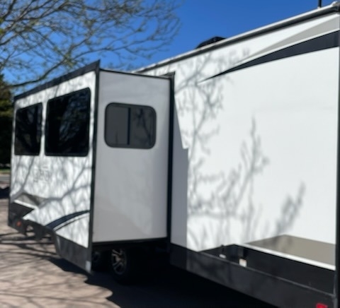 This Forest River has an overall length of 34.92 feet and comes equipped with 1 power retractable slide-out, 1 power retractable awning, A/C, a bunkhouse, an outdoor kitchen, and plenty of room to sleep 10. This unit has been well-maintained.