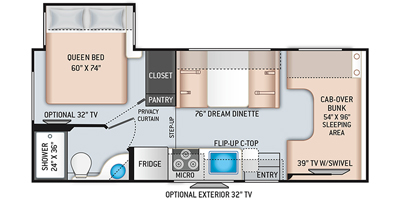 Additional sleeping options include a convertible sofa bed and an over-cab bunk, making this coach sleep up to 6 people comfortably.