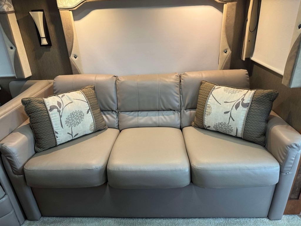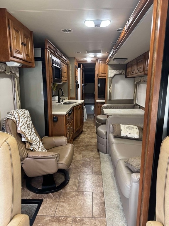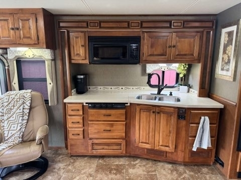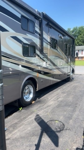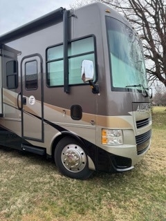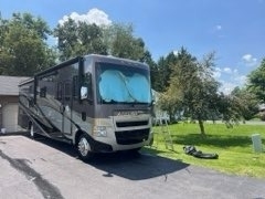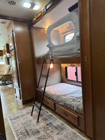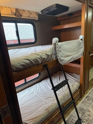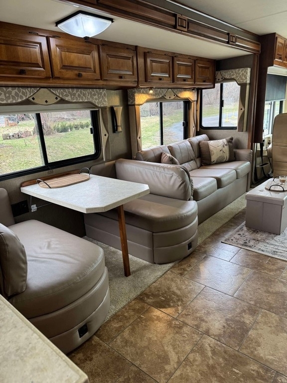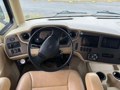 This Tiffin is powered by a 6.8L V10 engine and a 5-speed automatic transmission with 42,131 miles. The overall length is 35.83 feet and comes equipped with 4 power retractable slide-outs, 1 power retractable awning, 2 A/C units, bunk beds, and room to sleep up to 8. This unit has been well-maintained.