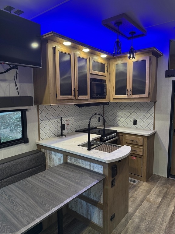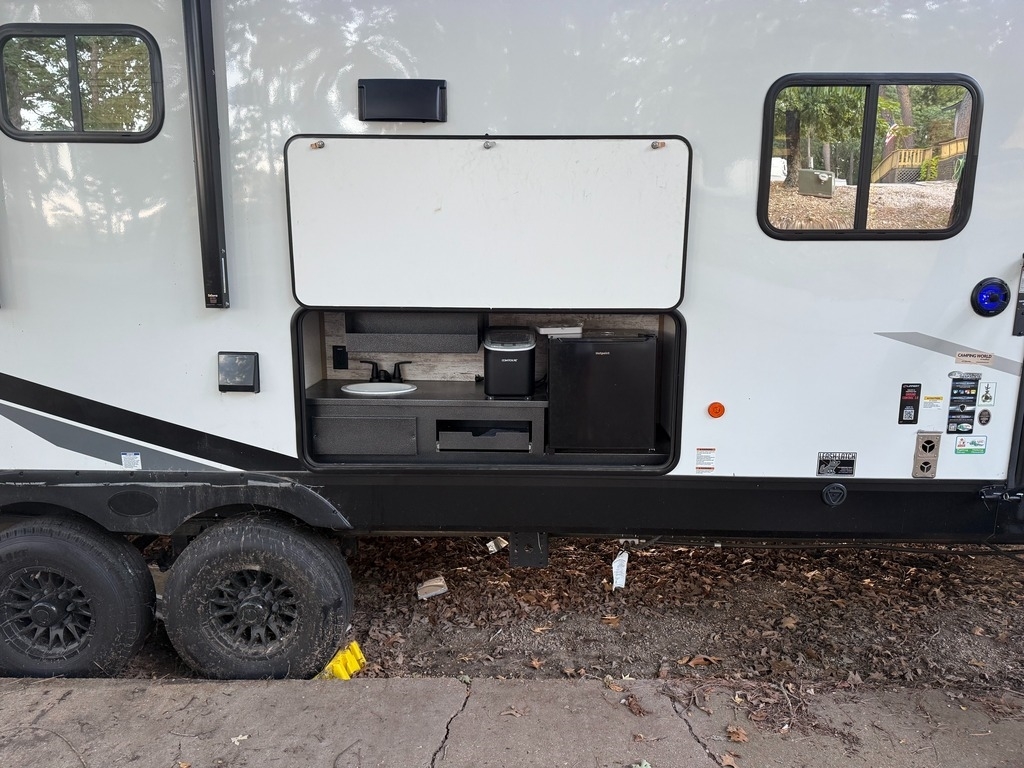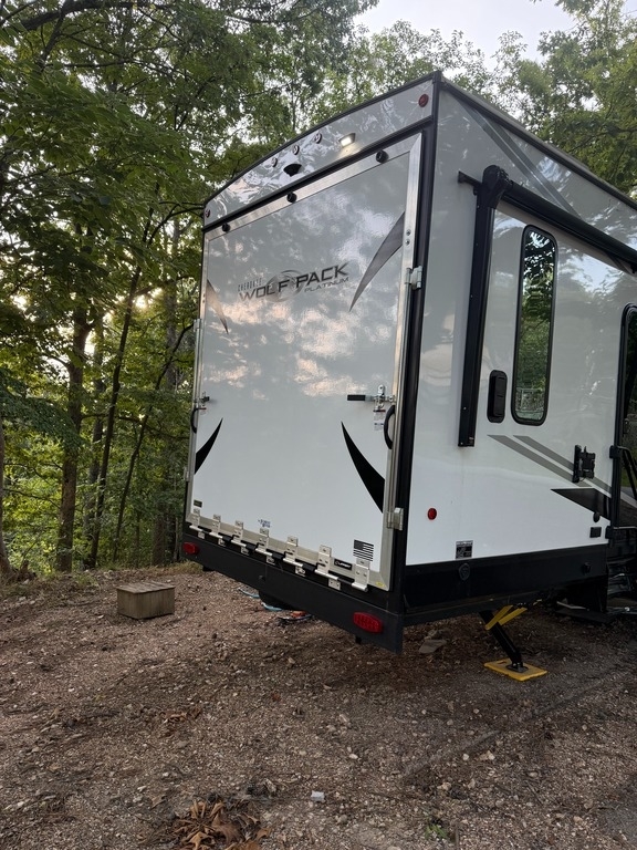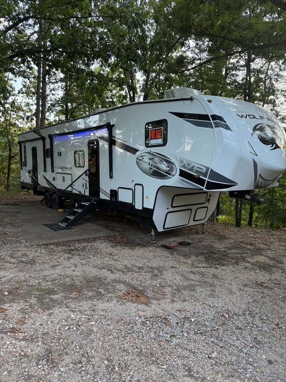 “For sale is a 2024 Forest River Cherokee Wolf Pack 365PACK16 Fifth Wheel Toy Hauler, fully loaded and ready for adventure. This spacious toy hauler features a solar package, 30-gallon fuel station, and a convenient outdoor kitchen area for easy entertaining. Inside, you’ll find 4 TVs, a cozy fireplace, and a king-size bed in the master suite. The unit also includes 1½ baths, perfect for families or guests. All hookups and power connectors are included, making it truly turn-key. Whether you’re hitting the trails or relaxing at the campsite, this toy hauler is built for comfort and functionality.”