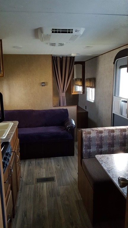 This 2015 Prime Time Avenger is approximately 26.75 feet long and comes equipped with 1 Awning, 1 A/C Unit, and room to sleep 4-6 people comfortably. This is a non-pet/non-smoking RV and there have not been any accidents or water damage.