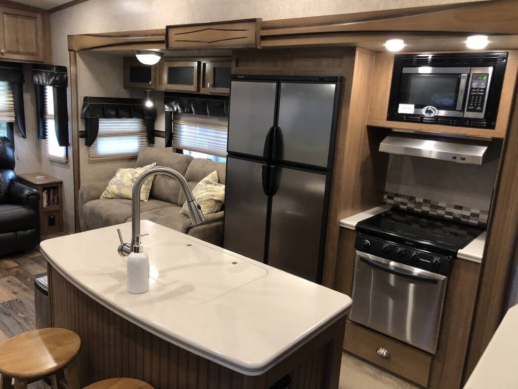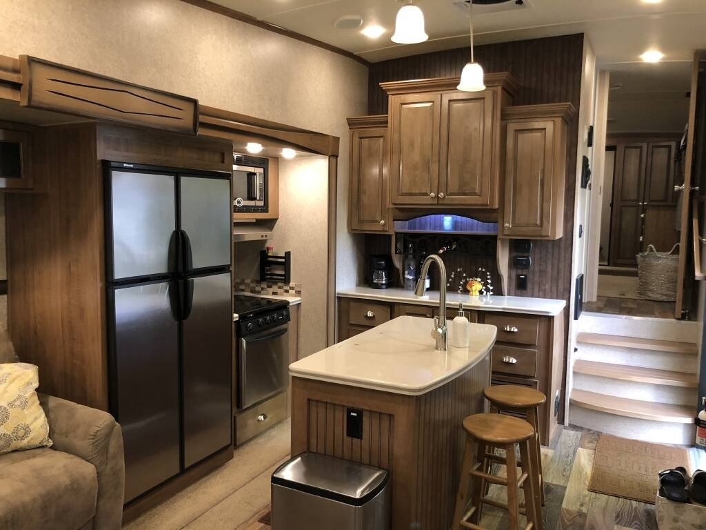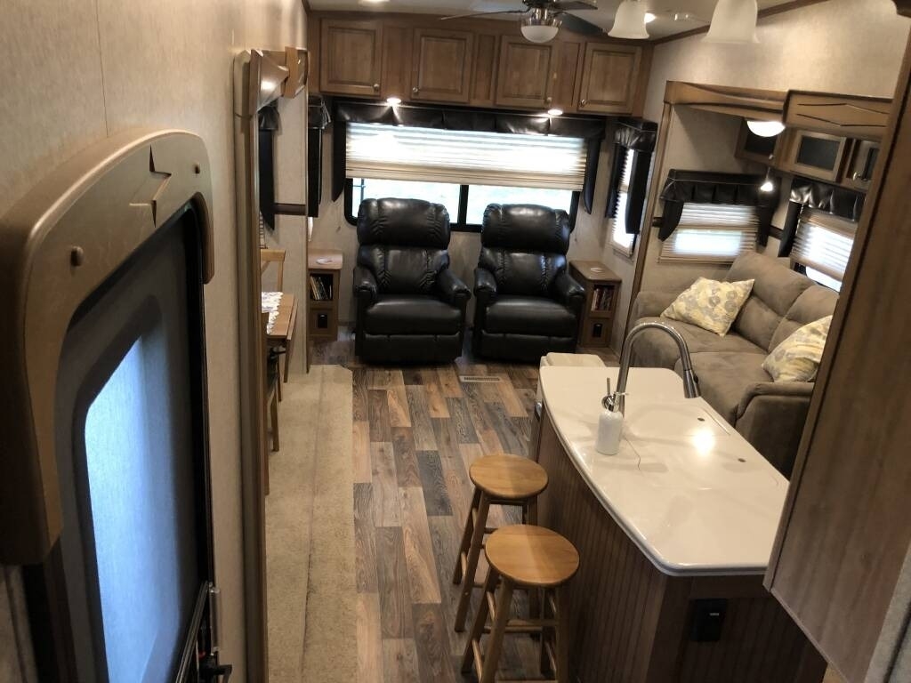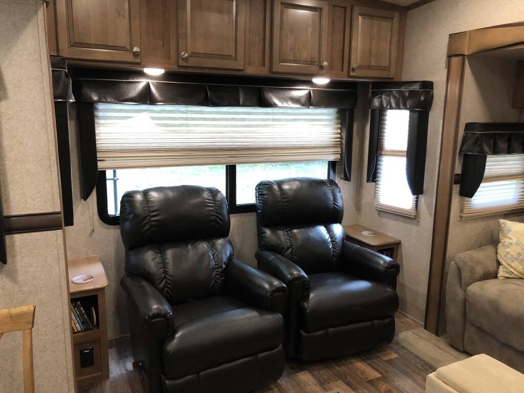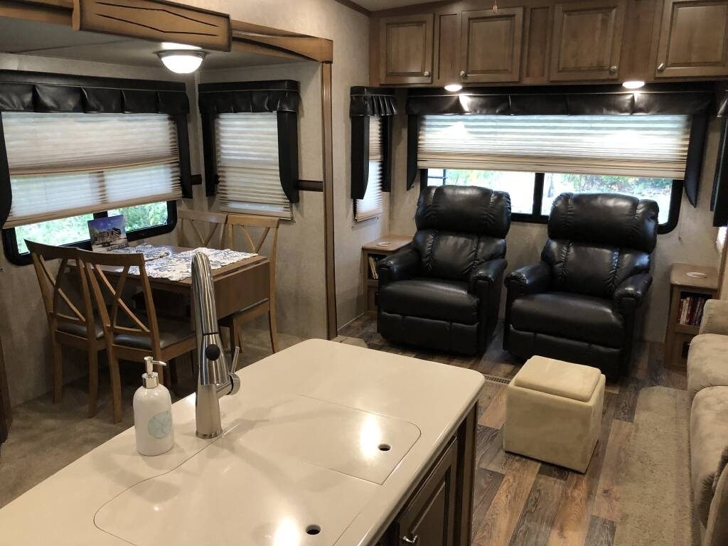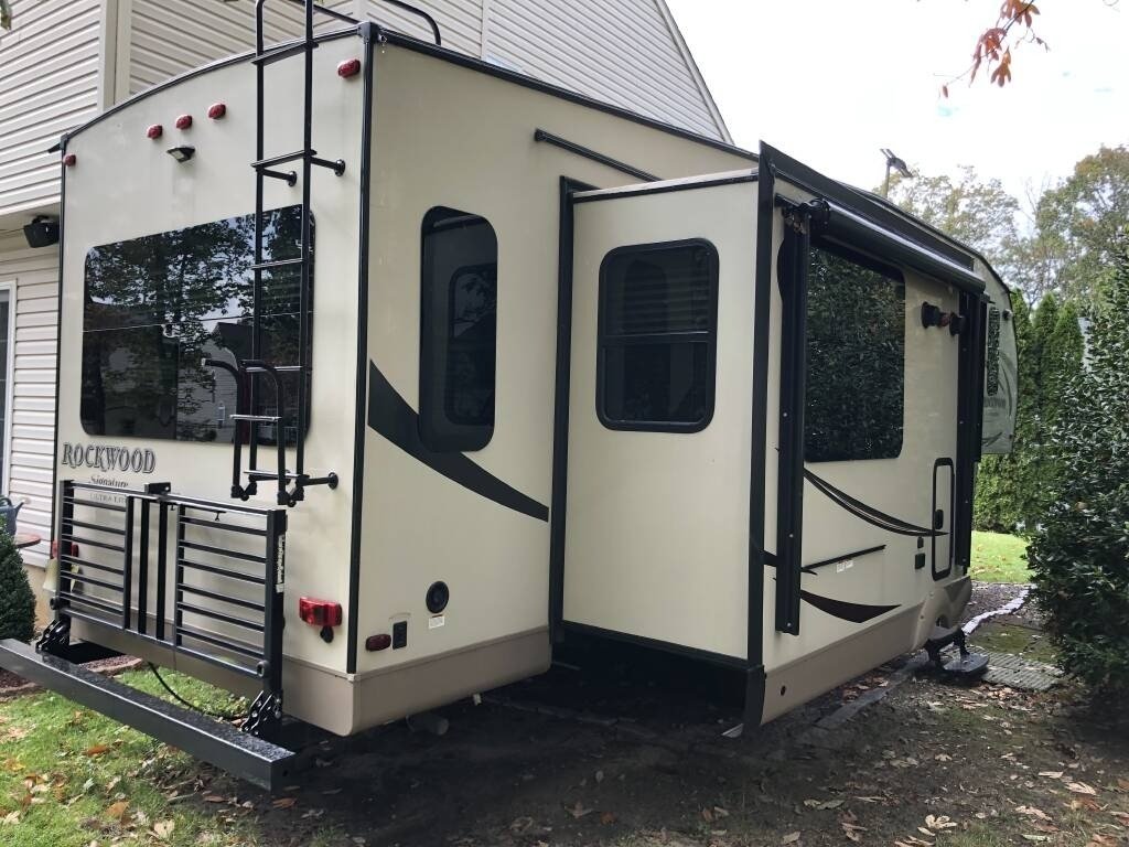 “For sale is our 2017 Forest River Rockwood Signature Ultra Lite 8299BS Fifth Wheel, in excellent condition with less than 1,000 miles of total travel. We've used it as a seasonal weekend retreat at the Jersey Shore, always stored on our property when not in use. It tows smoothly (approx. 10,000lbs fully loaded) and recently received four new, higher-load-rated tires. This well-maintained fifth wheel features a residential feel with a two-sink island kitchen, large propane refrigerator, microwave, oven, stove, and a 5-bottle wine rack. The living area includes an electric fireplace, a 42” Furrion TV, two leather La-Z-Boy recliners, and a queen-size sleeper sofa. The main bedroom has a comfortable queen bed with a foam topper, ample storage including a large closet, six soft-close drawers, under-bed storage, and space for a second TV. Additional upgrades and features include a smart ceiling fan with remote, two power awnings, heated tanks, dual batteries for extended dry camping, an enhanced AC system (ducted, largest size for 30 AMP), and an upgraded shower and bathroom layout with a laundry chute. The entertainment system offers Bluetooth, DVD/CD, and a 3-zone speaker system (interior/exterior). Also included: a Denali-rated rear cargo rack, a new (never-used) Forest River grill, wheel chocks, leveling gear, tripod stabilizer, and more camping accessories. This fifth wheel is clean, gently used, and truly ready to go.”