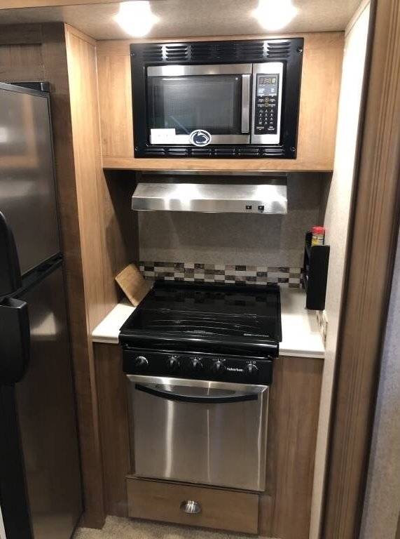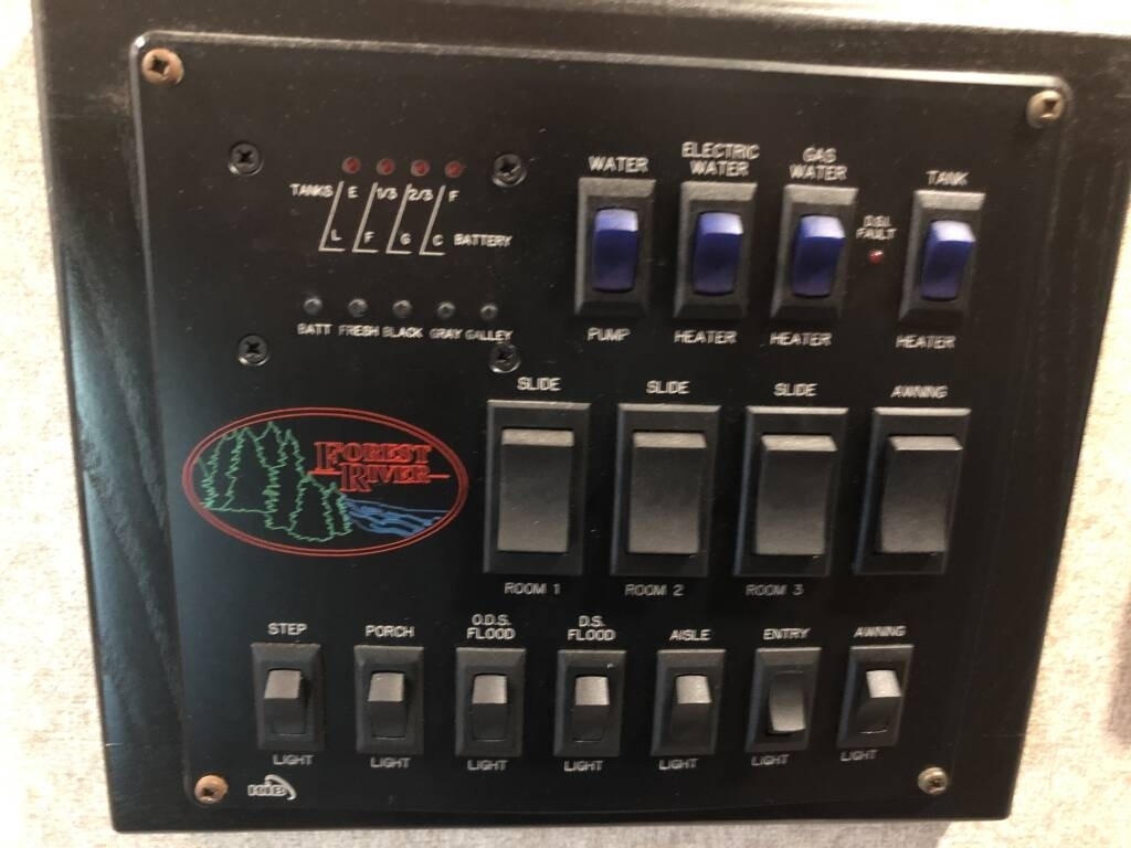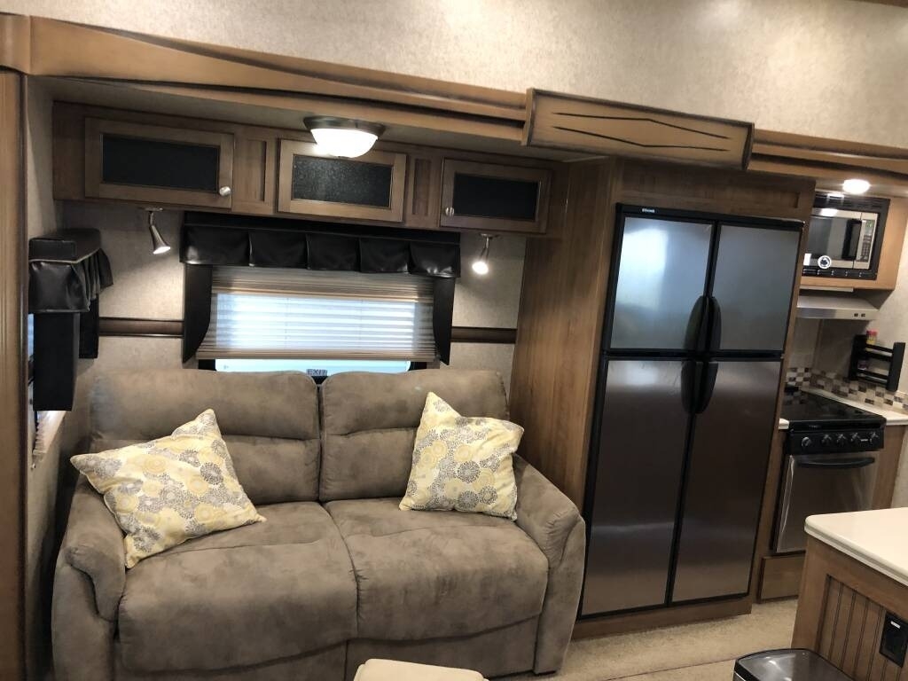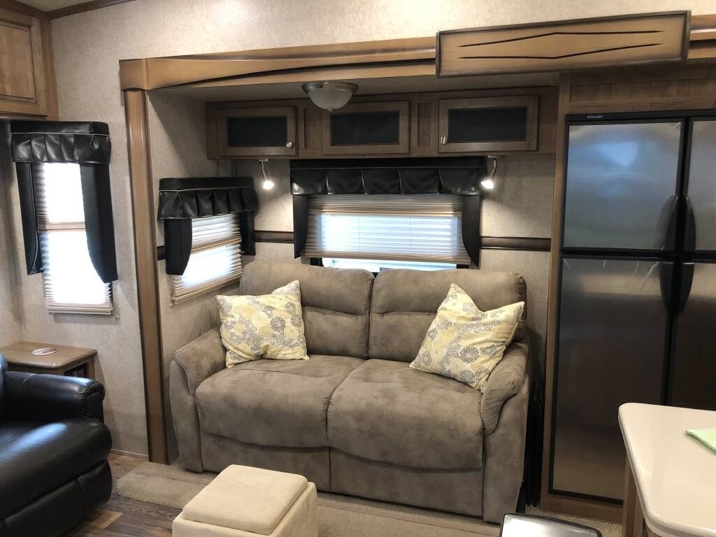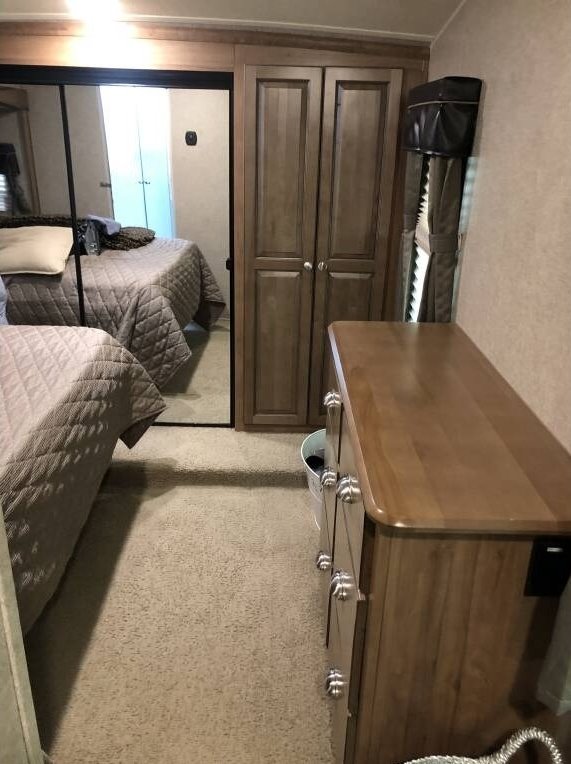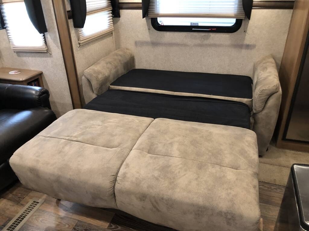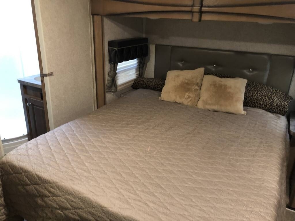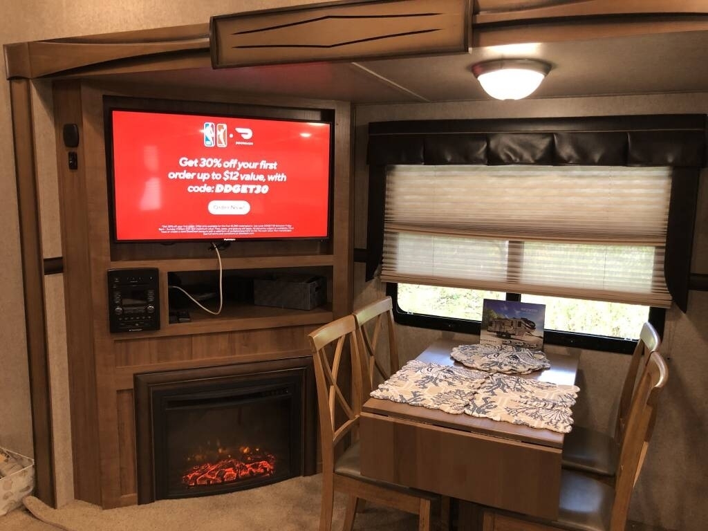 This Forest River has an overall length of 33.83 feet and comes equipped with 3 power retractable slide-outs, 2 power retractable awnings, 1 A/C unit, a fireplace, and plenty of room to sleep 4. This unit comes fully furnished and has been well-maintained.