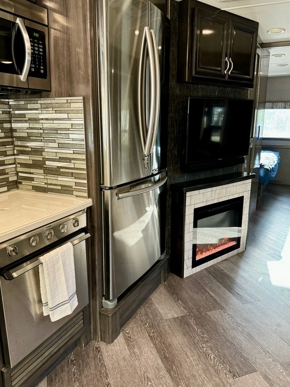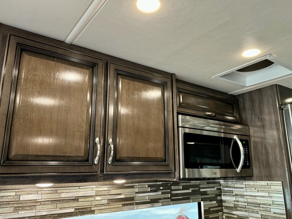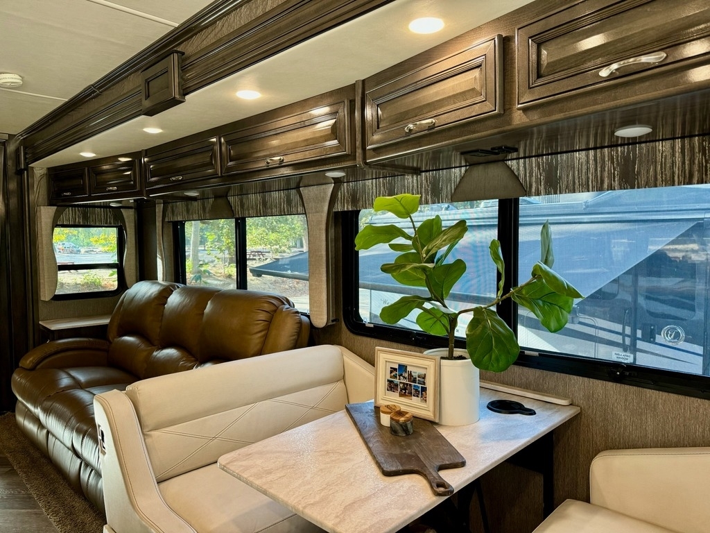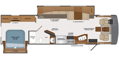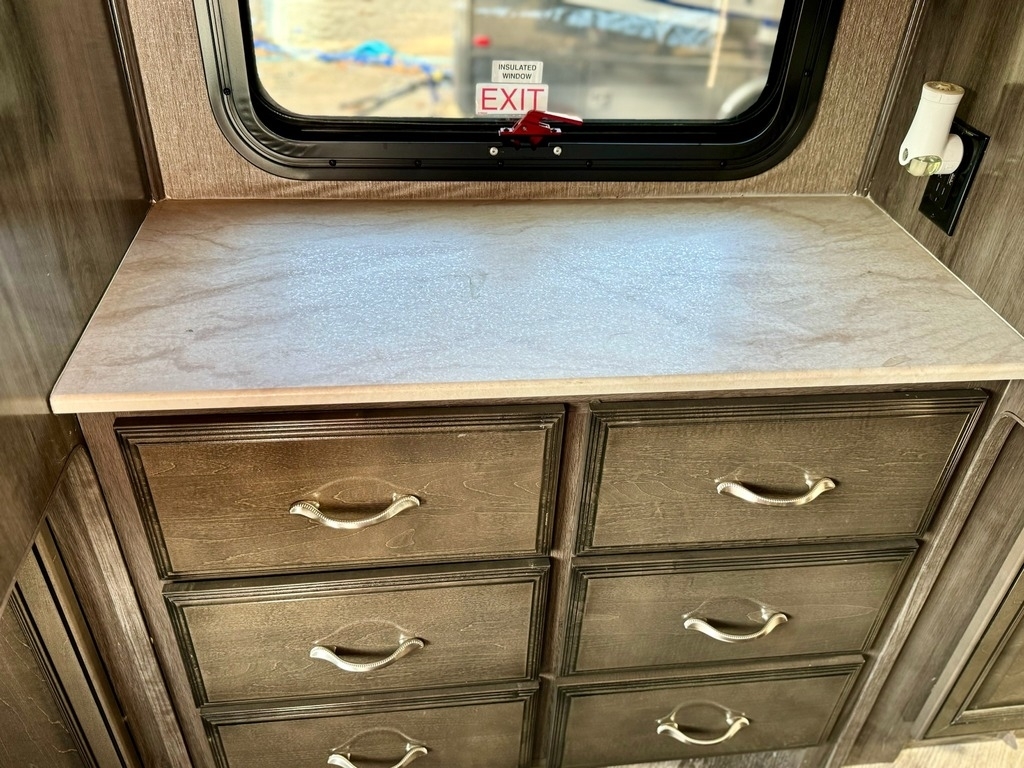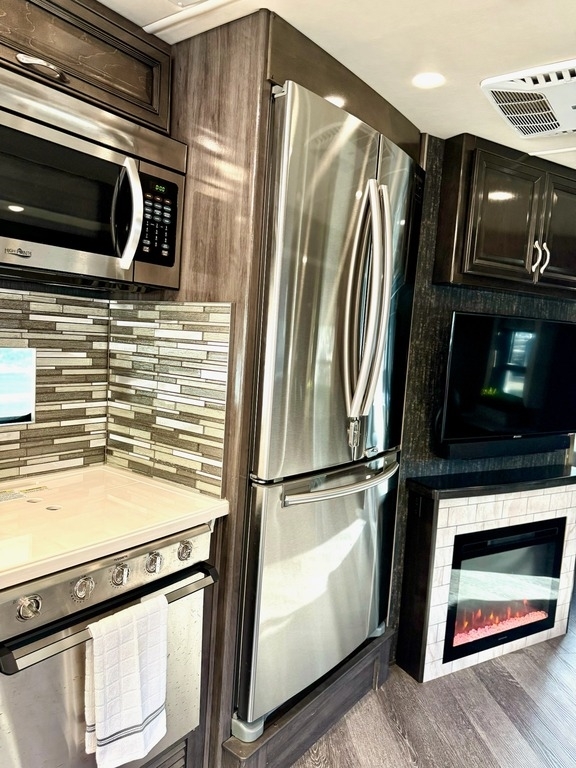 This Fleetwood is powered by a 7.3L V8 engine and a 6-speed automatic transmission with 23,190 miles. The overall length is 34.25 feet and it comes equipped with 2 power retractable slide-outs, 1 power retractable awning, 2 A/C units, a fireplace, an exterior entertainment system, and plenty of room to sleep 8. This unit has been well-maintained.