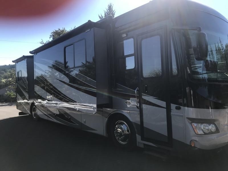 This 2013 Forest River Berkshire 390RB Class A Motorhome is 39.25  feet long and comes equipped with 1.5 baths four slide outs, a patio awning, two  air conditioning units, and can sleep six people comfortably. This coach is  powered by a 340 HP Cummins diesel engine paired with an automatic  transmission all on a Freightliner Chassis.. This motorhome has approximately 79,000 miles. Never smoked in,  no pets, and no water damage.