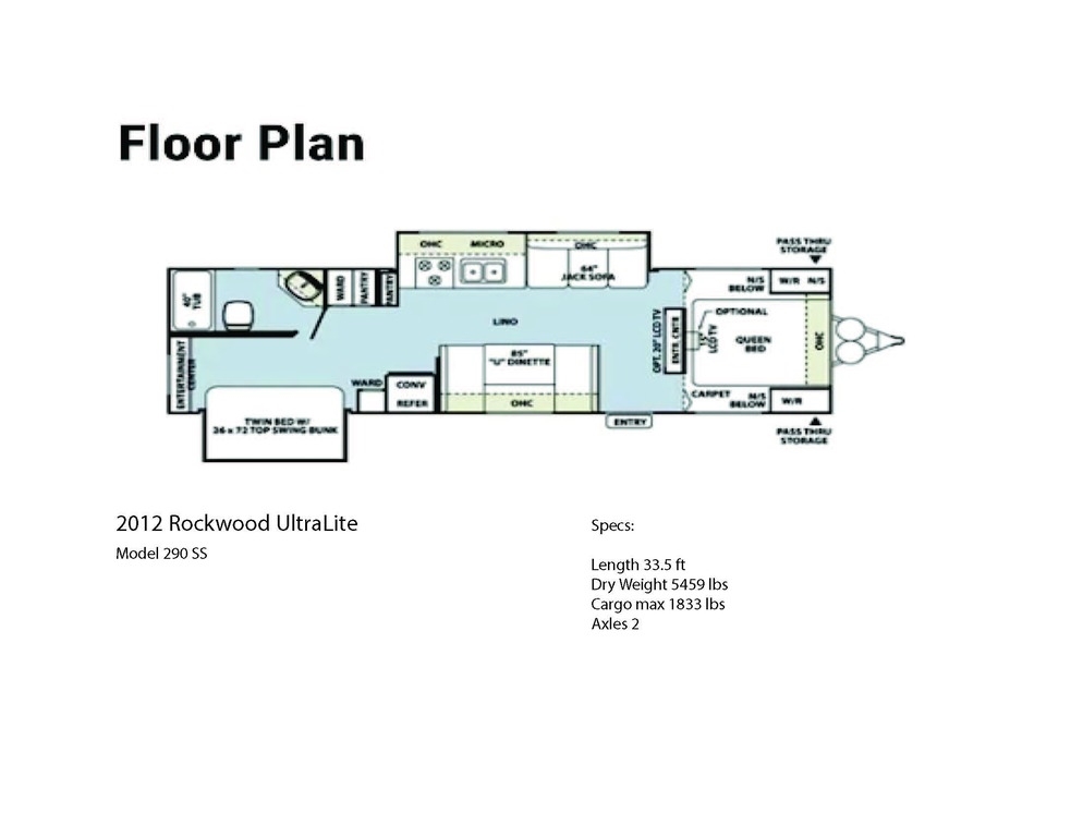 This 2012 Rockwood has an overall length of 33.42 feet and comes equipped with a 2 Slide Outs, 1 Awning, 1 A/C units and plenty of room to sleep 8.