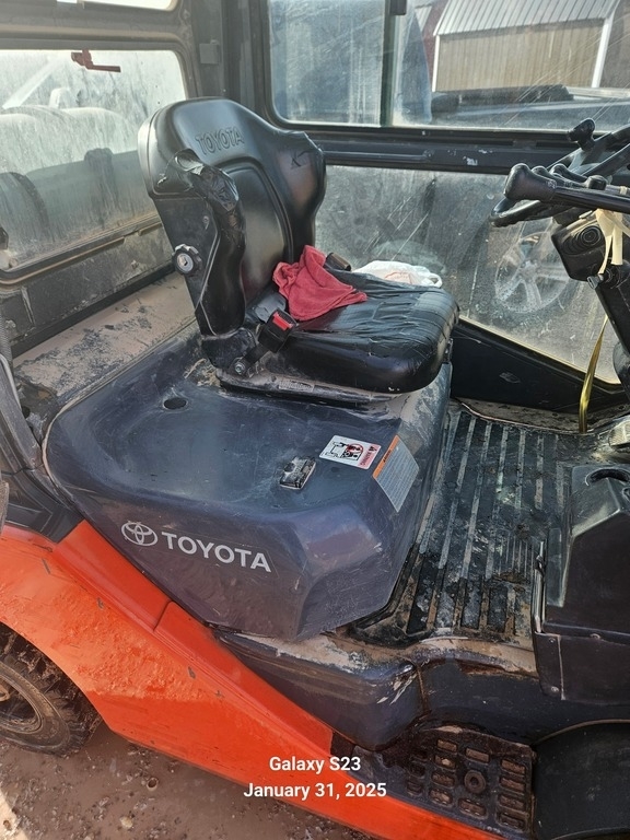 “For sale is a 2011 Toyota 8FGU32 Forklift, in good working condition with some recent updates. The heated cab works well, providing comfort in colder environments. The forklift features a side-shift and fork positioner, although the fork positioner needs repair, it still partially functions. The unit has a new radiator and has just received a fresh service, ensuring it’s ready for use. A reliable machine with some minor maintenance needed, ideal for a variety of lifting and material handling tasks.”