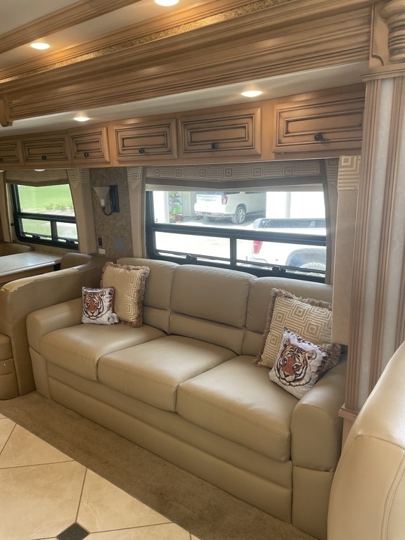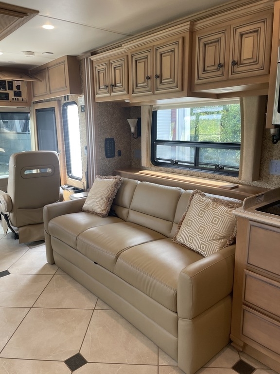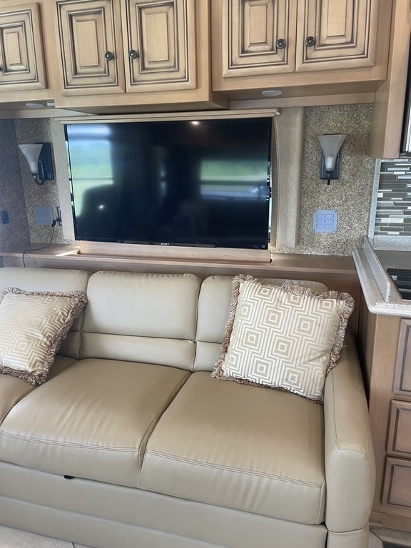 This 2014 Newmar Is 43.75’ Feet Long and Comes Equipped With 3 Slide Outs, 1 Awning, 3 Air Conditioning Units , And Can Sleep 4 People Comfortably.