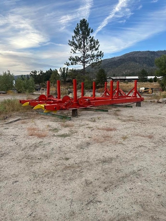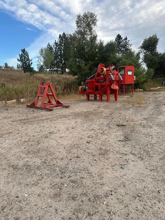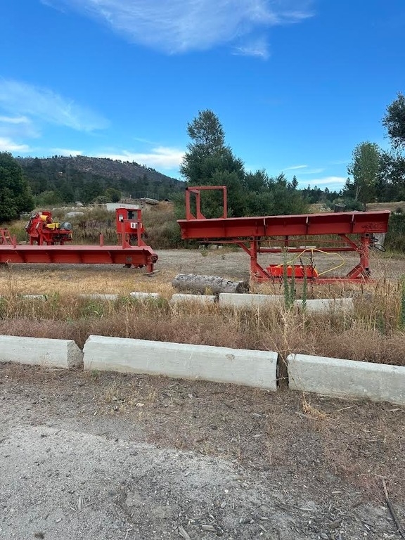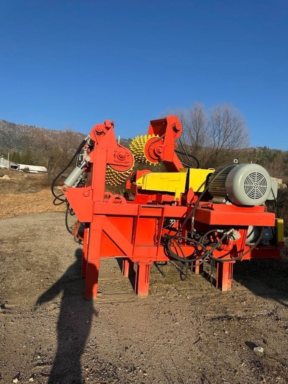 cab and controls, bark removal system, and log outfeed trough with 3-arm kicker.