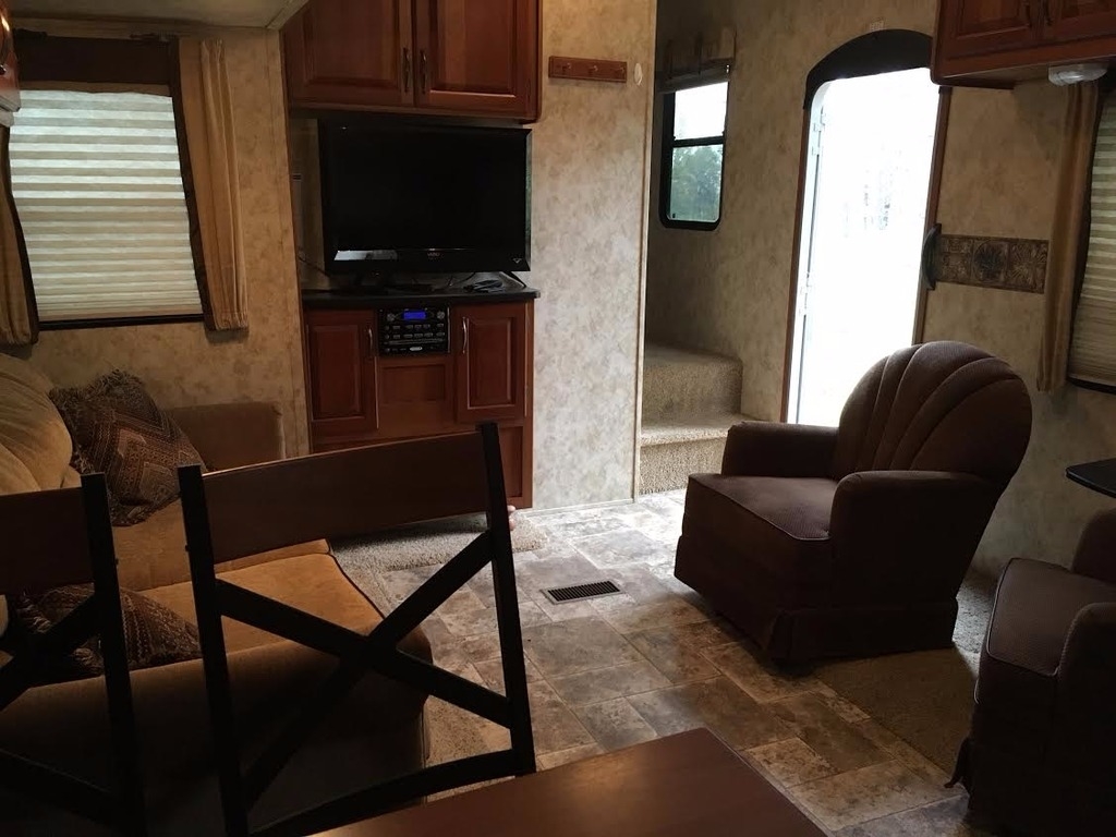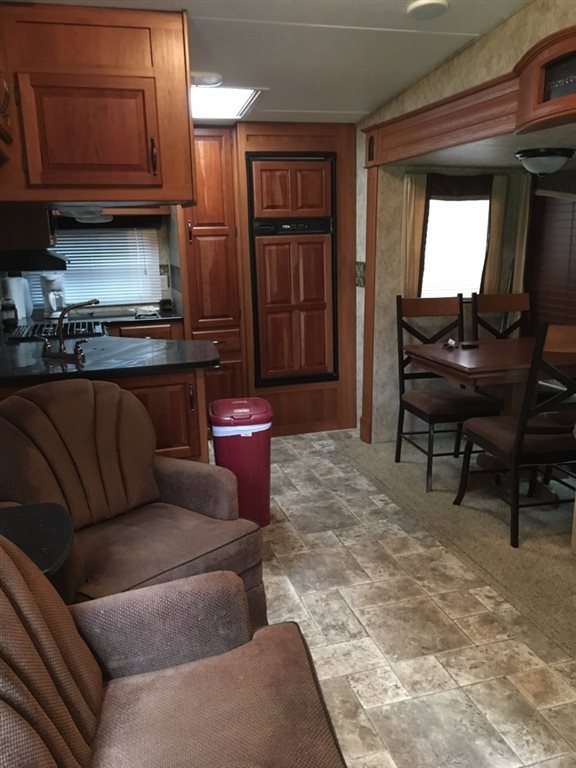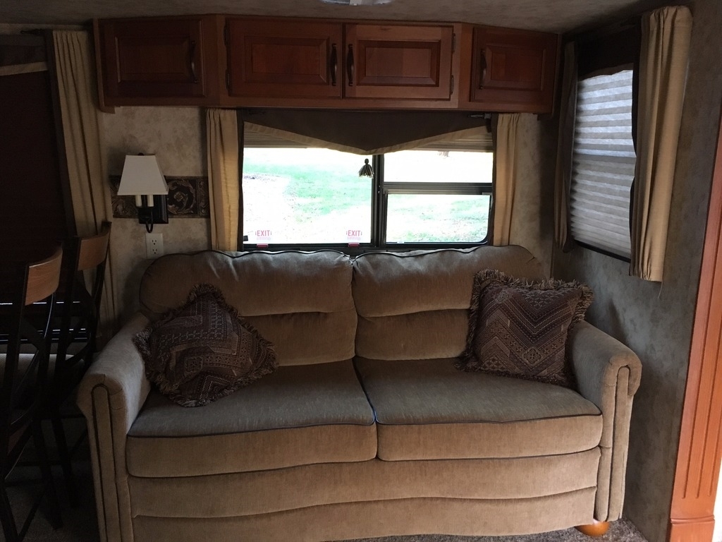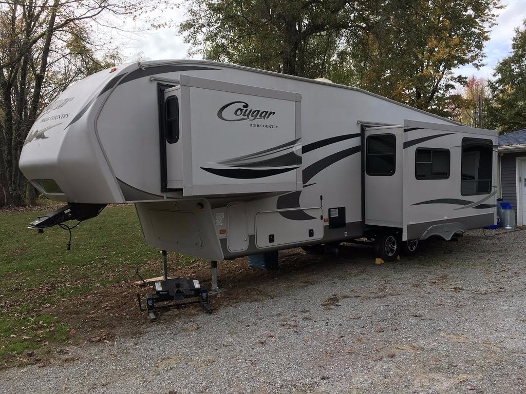 If you're in the market for a really nice luxurious 5th wheel then take a look at this 2012 Keystone Cougar 4 Seasons by High Country 299RKS. This 5th wheel is a 34 feet, double slide outs, and weighs only 7,500 lbs!