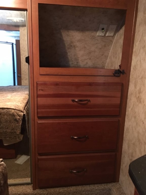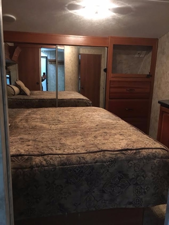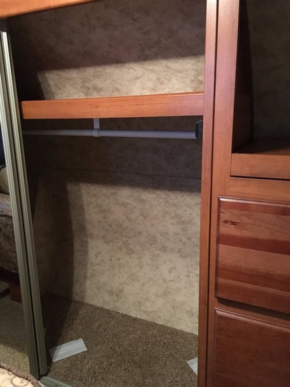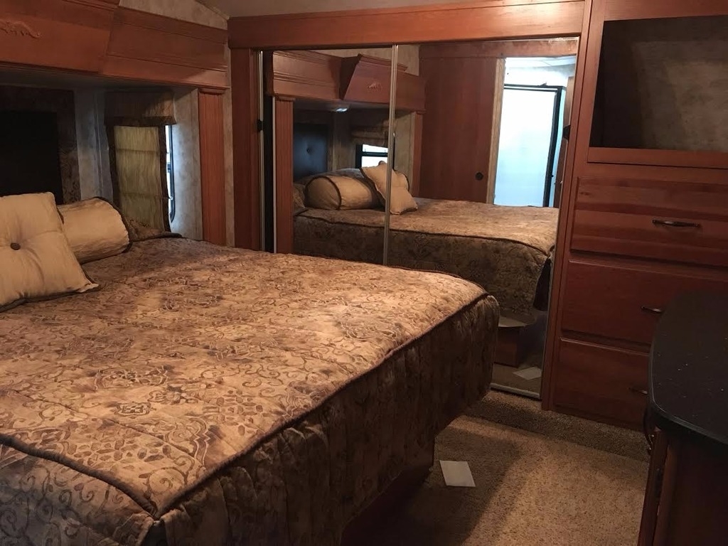 The master bedroom has over size drawers with full extension drawer guides. The roomy front closet features full length mirrored sliding doors. There is additional storage in the cabinet beside the closet.