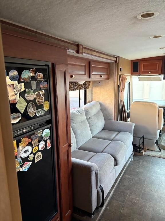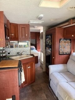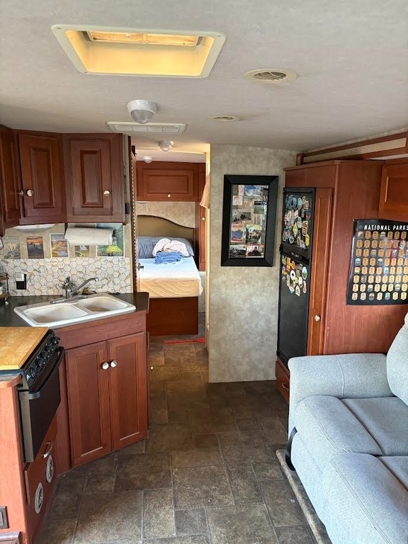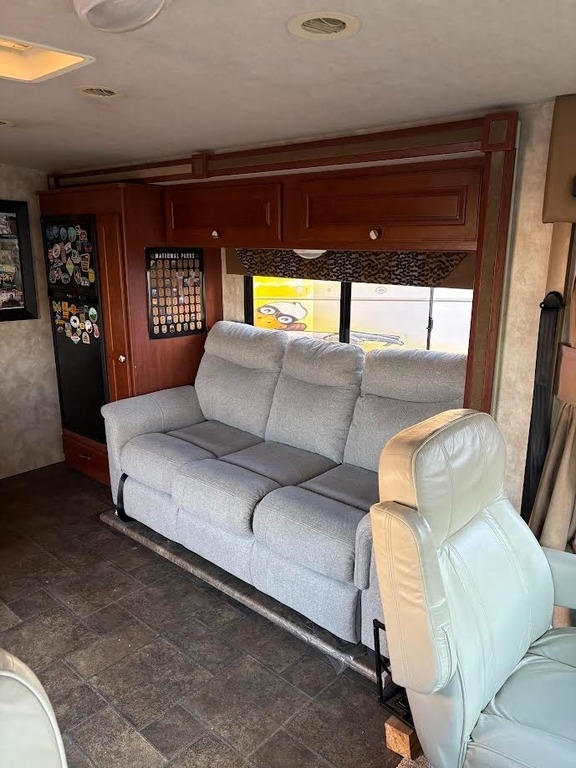 debris buildup. The original dinette has been replaced with a pull-out sofa,