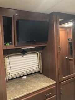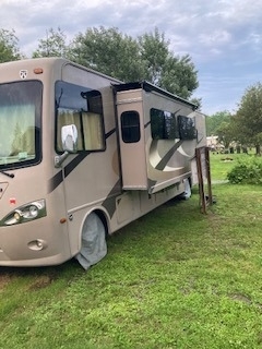 “2014 Thor Motor Coach Hurricane 34E Class A RV, perfect for family adventures and road trips. This spacious motorhome features a convenient queen-size bunk that effortlessly lowers with the push of a button, providing extra sleeping space when needed. With a bath and a half, including a full-sized shower, there is plenty of room for everyone to get ready comfortably. Inside, you’ll find two TVs for entertainment, plus an additional TV outside for enjoying movies under the stars. The RV is equipped with a washer and dryer combo, making laundry easy while on the road. A satellite dish ensures you can stay connected and entertained wherever you go. This Hurricane is ready for the next adventure, with new tires and batteries installed in 2022, ensuring reliability and peace of mind. Don’t miss out on this well-maintained and thoughtfully designed RV!”