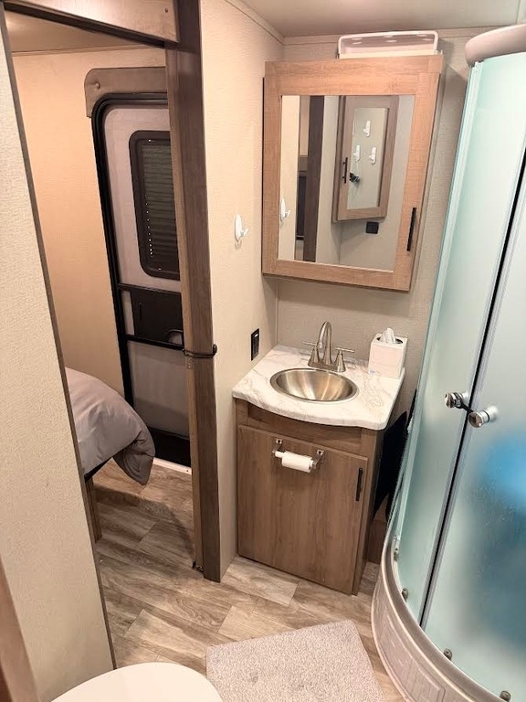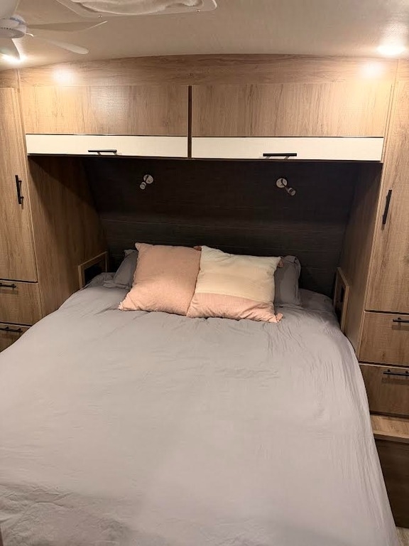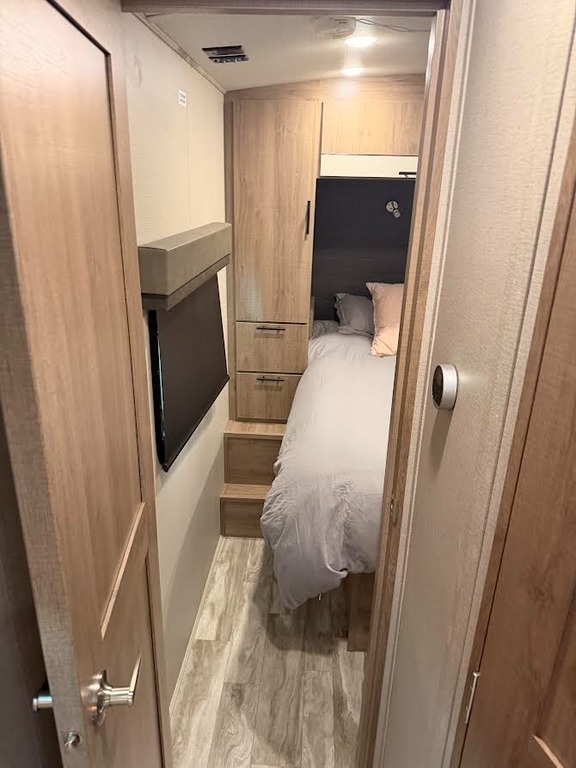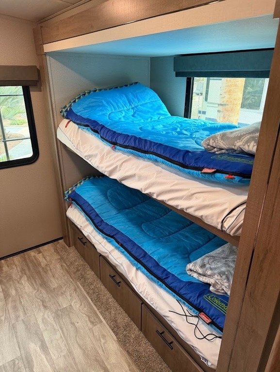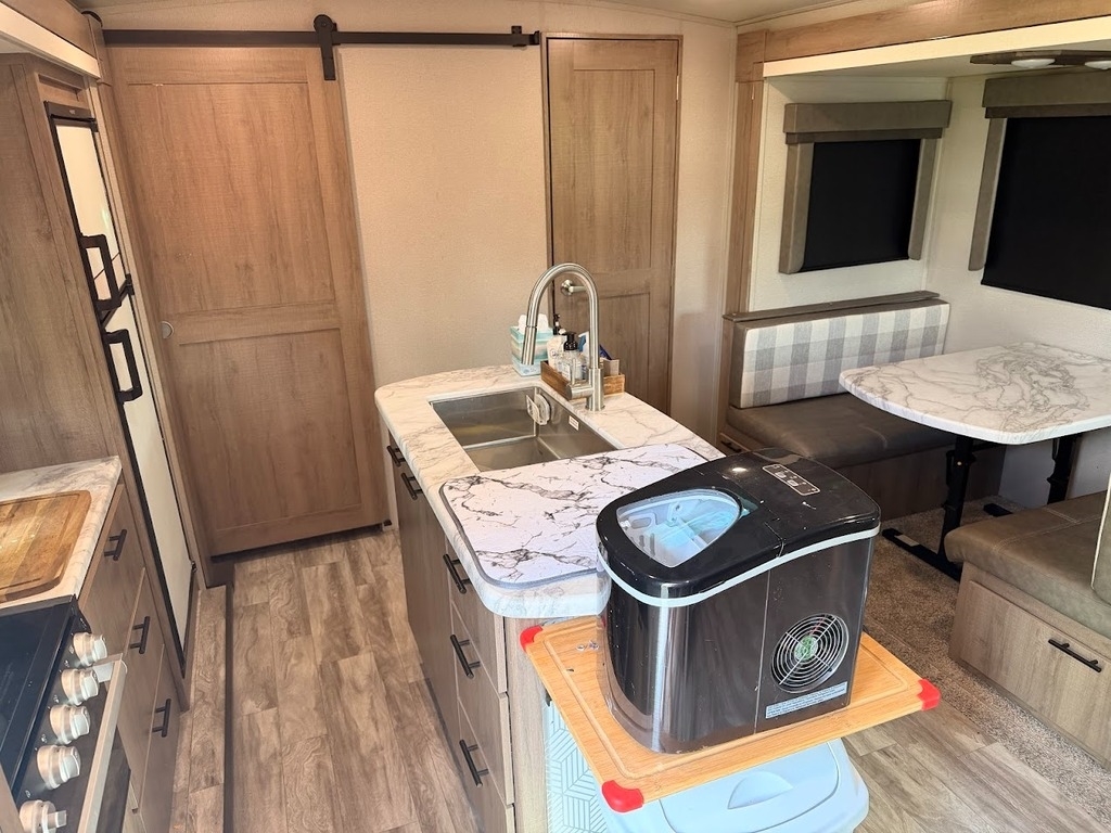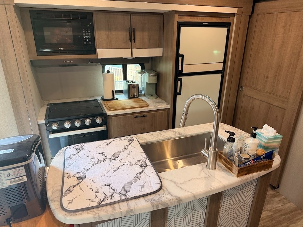 “This RV has been well taken care of and regularly maintained. There are 2 brand new AGM 6 volt batteries. The tires are approximately one year old, providing peace of mind for your travels. It is equipped with a ProPride hitch for improved towing stability and safety, along with an upgraded air conditioning system featuring RV Airflow for better cooling efficiency and comfort.