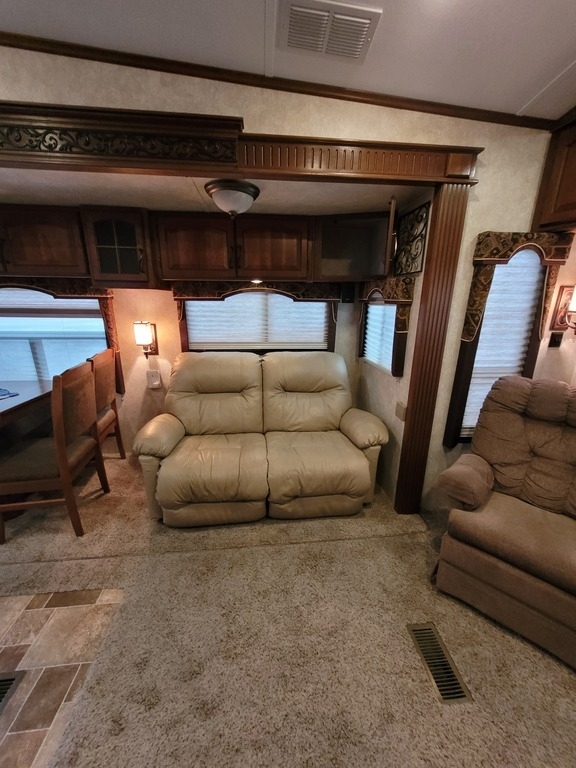 This 2013 Keystone Montana Hickory M3J82RL Fifth Wheel Has an overall length of 38ft and comes equipped with 3 slide-outs, 1 awning, 2 A/C units, with the room to sleep up to 6. This Fifth Wheel has not had any accidents or water damage; Non-Smoking, No pets.