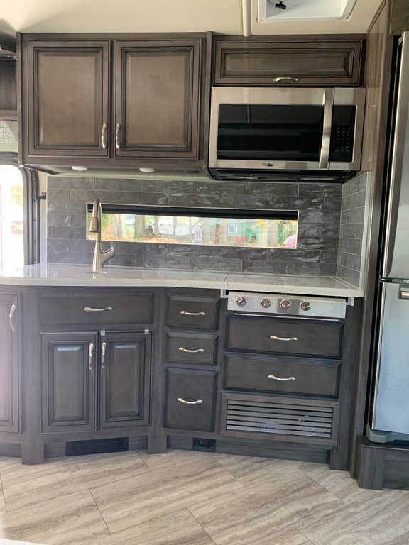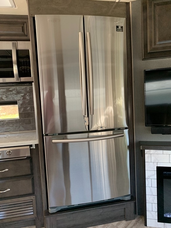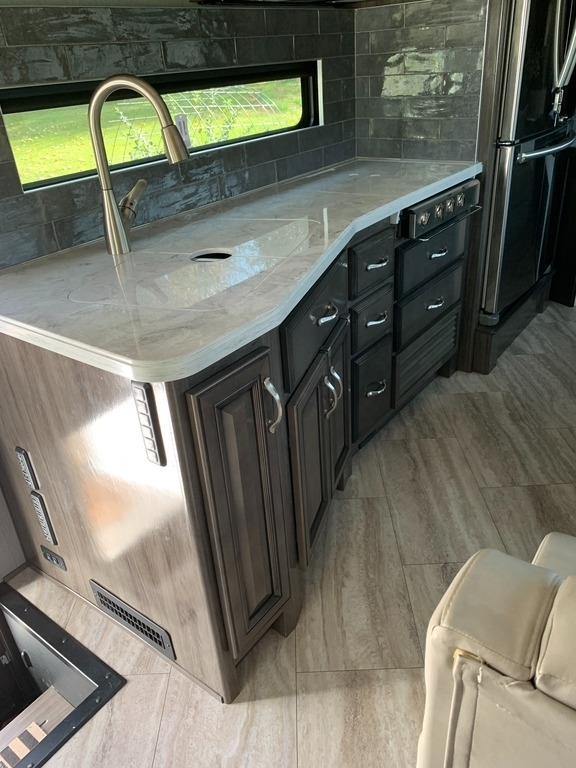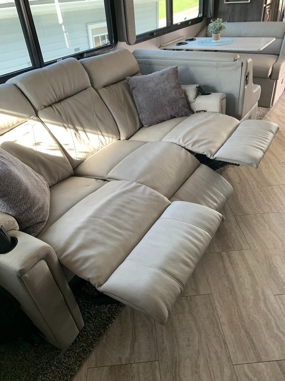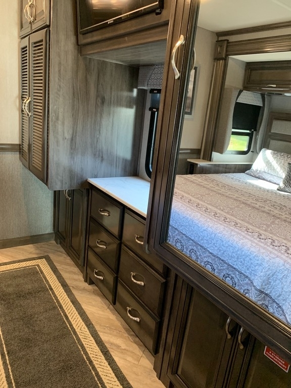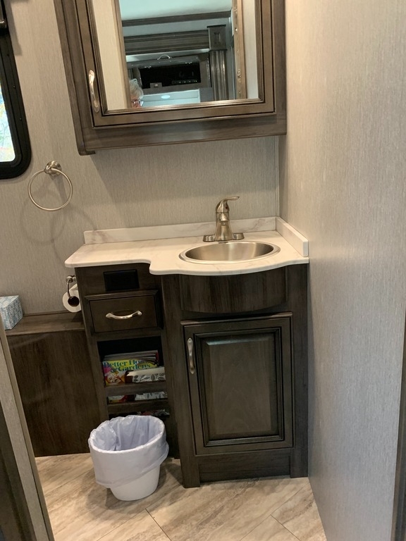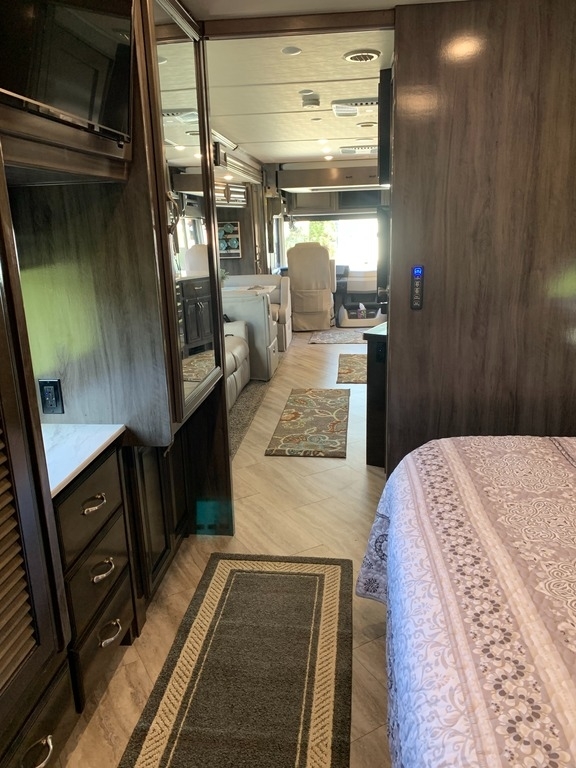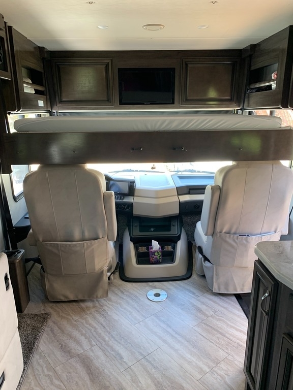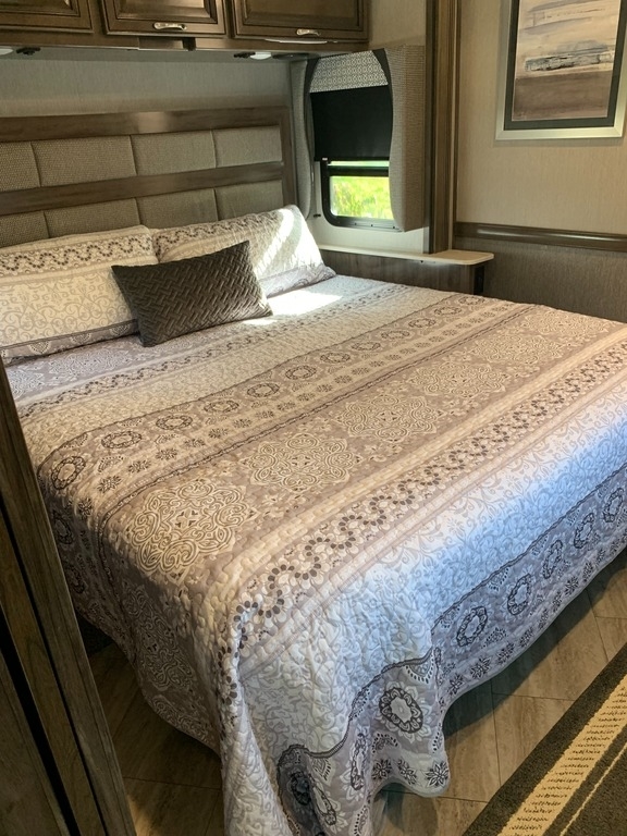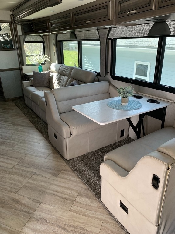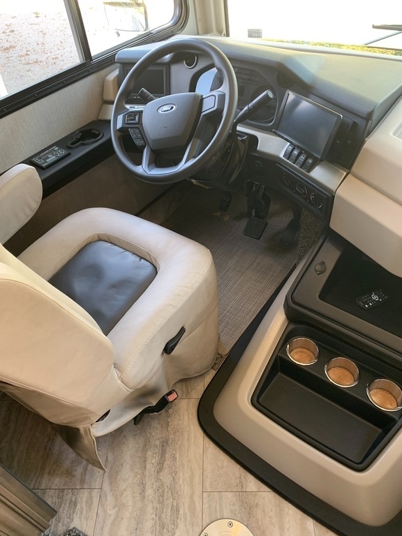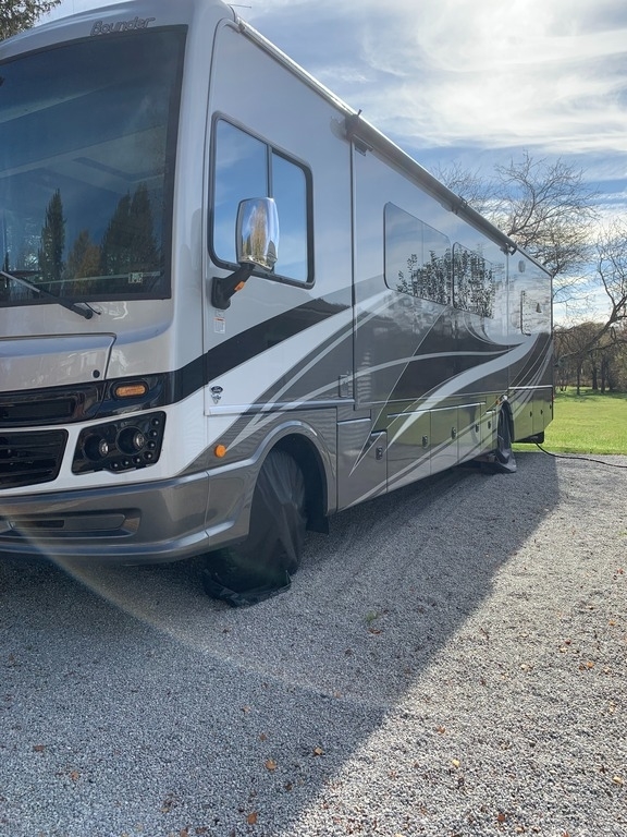 “2021 Fleetwood Bounder 35K Class A RV, a luxurious and spacious home on wheels. This model features a convenient bath and a half layout, perfect for families or entertaining guests. It comes equipped with satellite for your entertainment needs and has wheel covers and a mud flap added for extra protection on the road. Enjoy movie nights with four TVs—three inside and one outside! The full-size refrigerator with ice maker and microwave/convection combo make cooking and storing food a breeze. This RV is ready for the next adventure!”